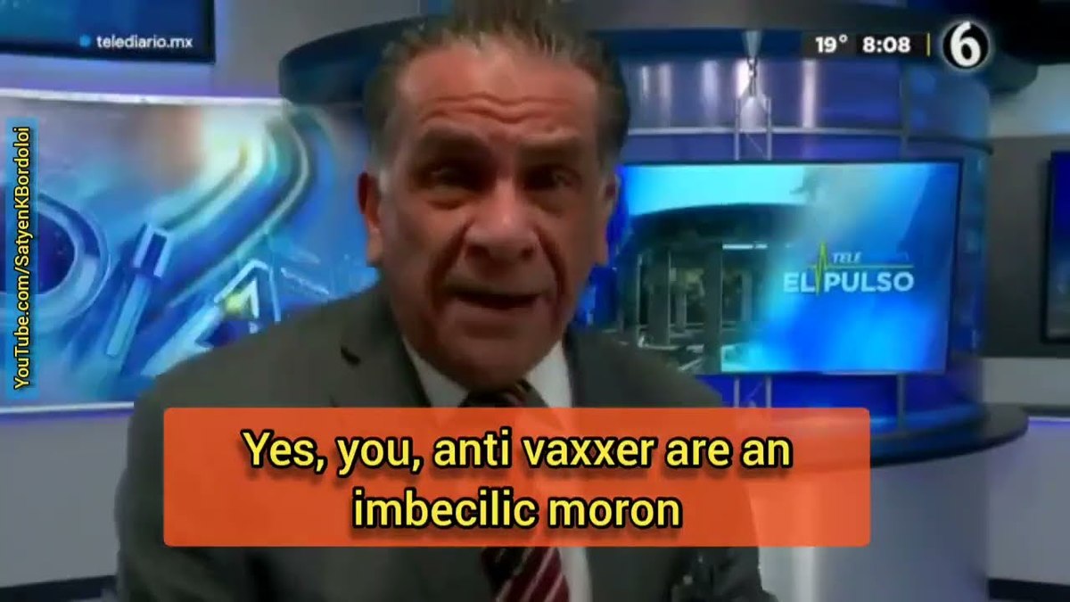 مجری یک شبکه تلویزیونی در مکزیک که از ماسک نزدن مردم عصبانی شده رو به دوربین میگوید: احمقهای بی شعور ماسک بزنید.