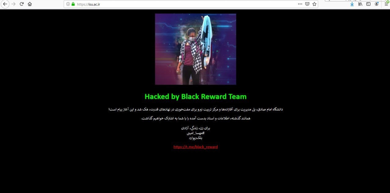 طبق تصویری که در صفحه اول این سایت درج شده، گروه هکری موسوم به بلک ریوارد مسئولیت این حمله را بهعهده گرفته است.