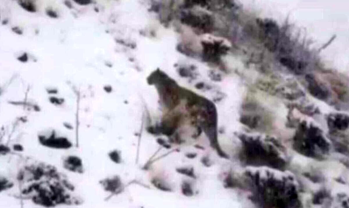 یک قلاده پلنگ ایرانی در منطقه شکار ممنوع طالقان البرز و در هوای برفی مشاهده شده است.