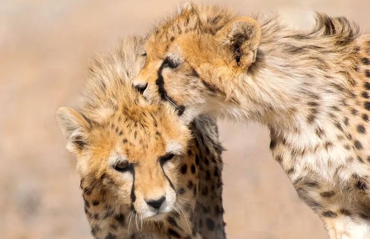 تصاویری جدید از بازیگوشیهای «آذر» و «توران»، توله یوزپلنگهای ایرانی را مشاهده می کنید که در پارک ملی توران در شهرستان شاهرود نگهداری میشوند.