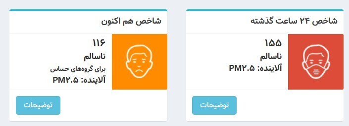 عکس/ شاخص آلودگی هوای تهران امروز ۱۵ بهمن