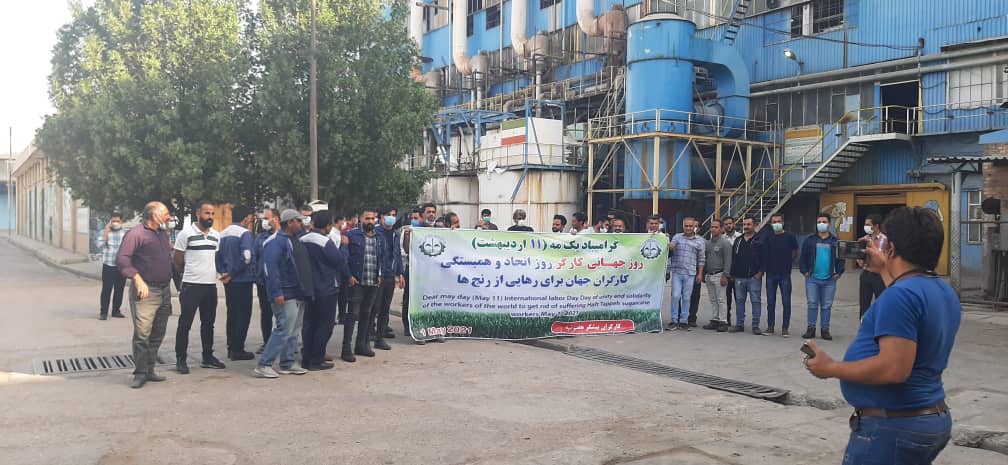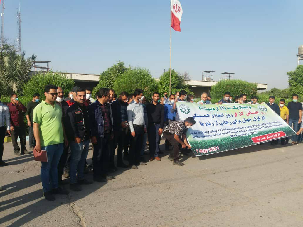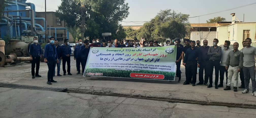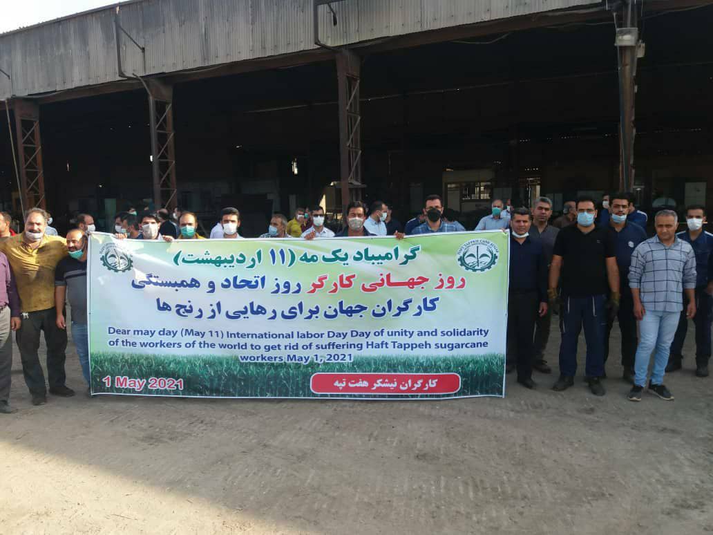 اقتصاد۲۴- همزمان با روز جهانی کارگر صبح امروز جمعی از کارگران مجتمع کشت و صنعت نیشکر هفت تپه در بخش های مختلف این مجتمع گرد هم آمدند و در مراسمی مختصر و کوچک مراسم روز جهانی کارگر را گرامی داشتند و به بازخوانی مطالبات خود و همکارانشان پرداختند.