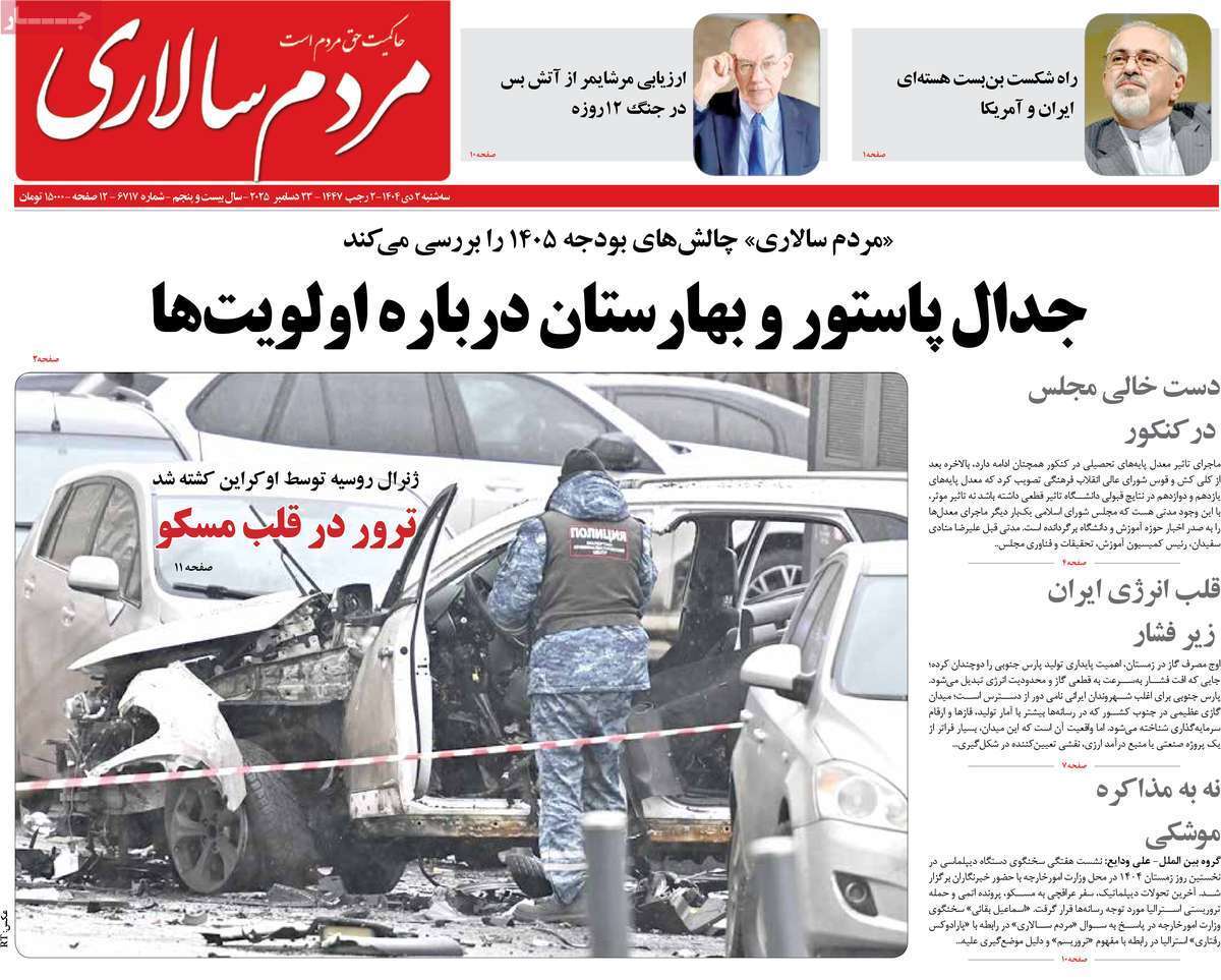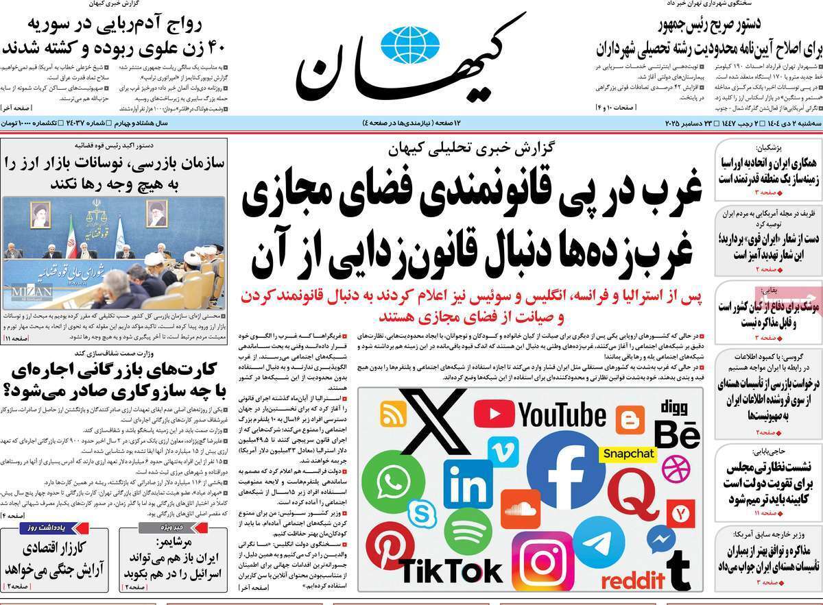 صفحات نخست روزنامه‌های جمهوری اسلامی، وطن امروز، مردمسالاری، فرهیختگان، جوان، شرق، آرمان ملی، هفت صبح، کیهان، اعتماد، آرمان، هم میهن و سازندگی امروز سه شنبه ۲ دی ۱۴۰۴ را ببینید.