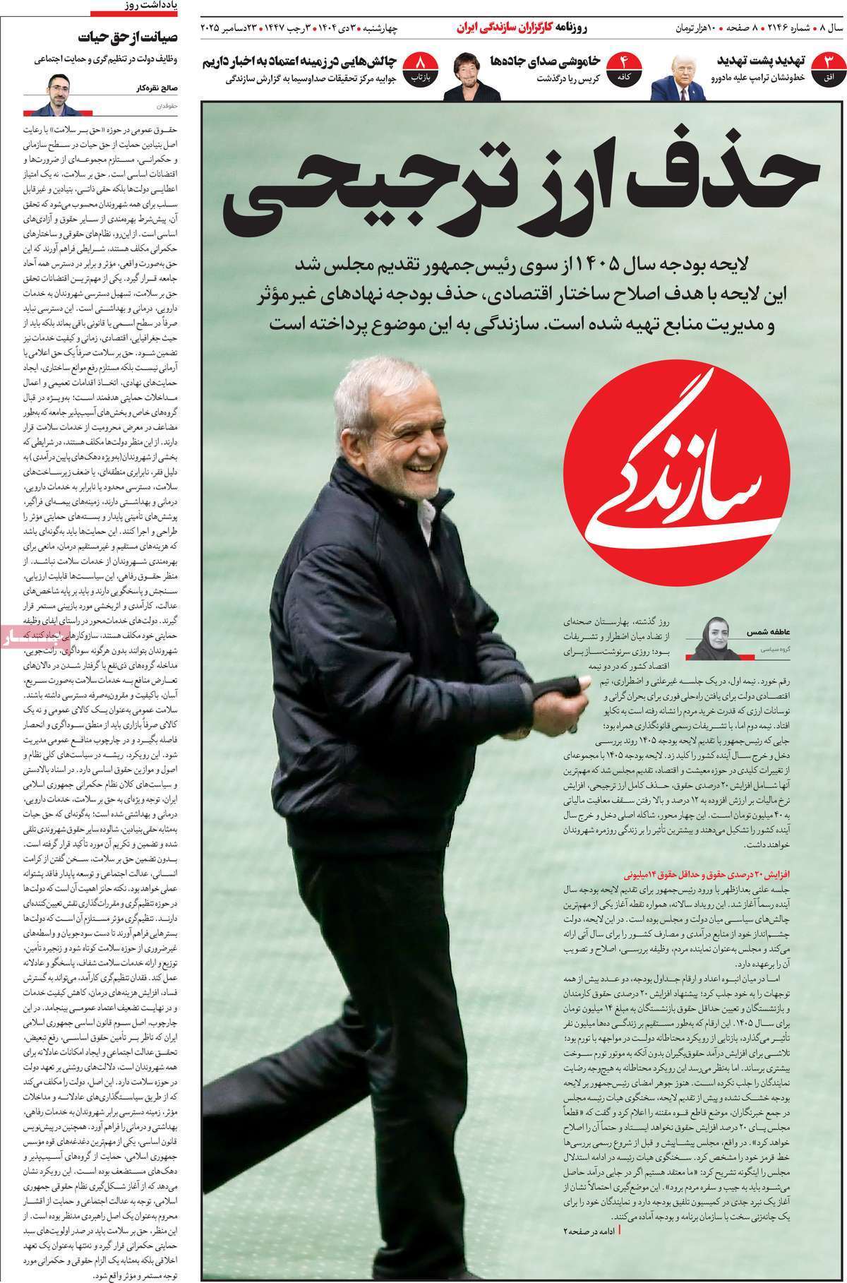 صفحات نخست روزنامههای جمهوری اسلامی، وطن امروز، مردمسالاری، فرهیختگان، جوان، شرق، آرمان ملی، هفت صبح، کیهان، اعتماد، آرمان، هم میهن و سازندگی امروز چهارشنبه ۳ دی ۱۴۰۴ را ببینید.