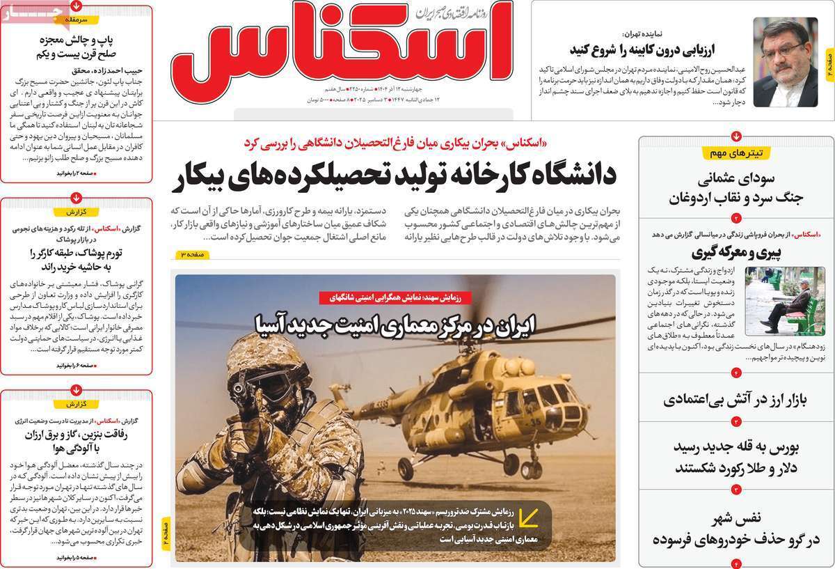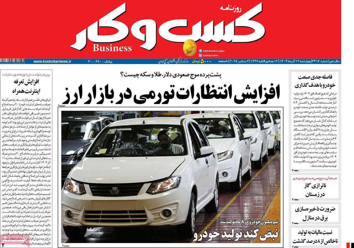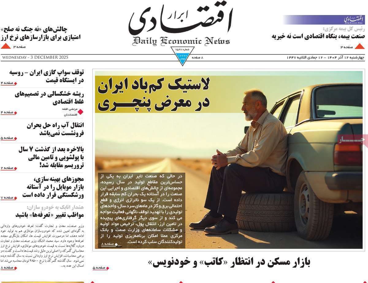 صفحات نخست روزنامههای اقتصادی کشور دنیای اقتصاد، تعادل آفتاب اقتصادی، اقتصاد ملی، اقتصاد مردم، اسکناس، ابرار اقتصادی، کسب و کار، جهان صنعت، آفتاب اقتصادی، عصر اقتصاد، جهان اقتصاد، آسیا، صمت و دنیای خودرو، امروز چهارشنبه ۱۲ آذرماه ۱۴۰۴ را ببینید.