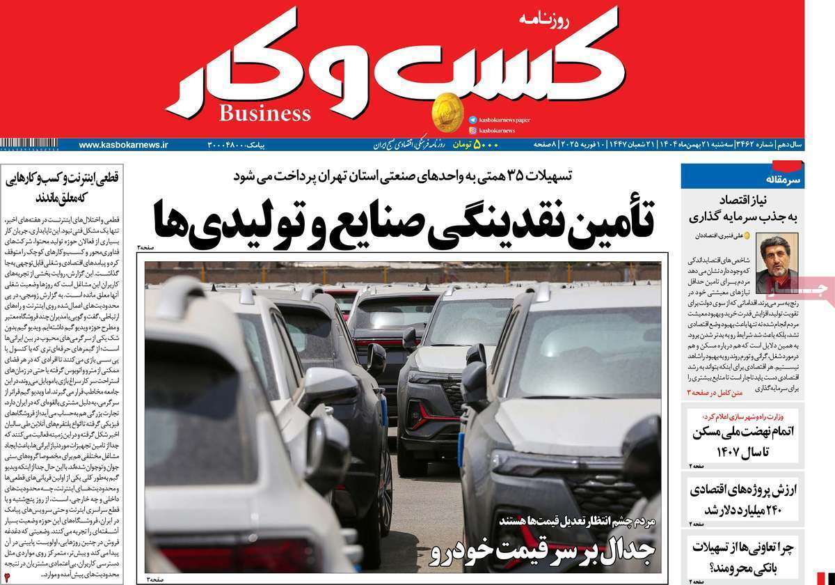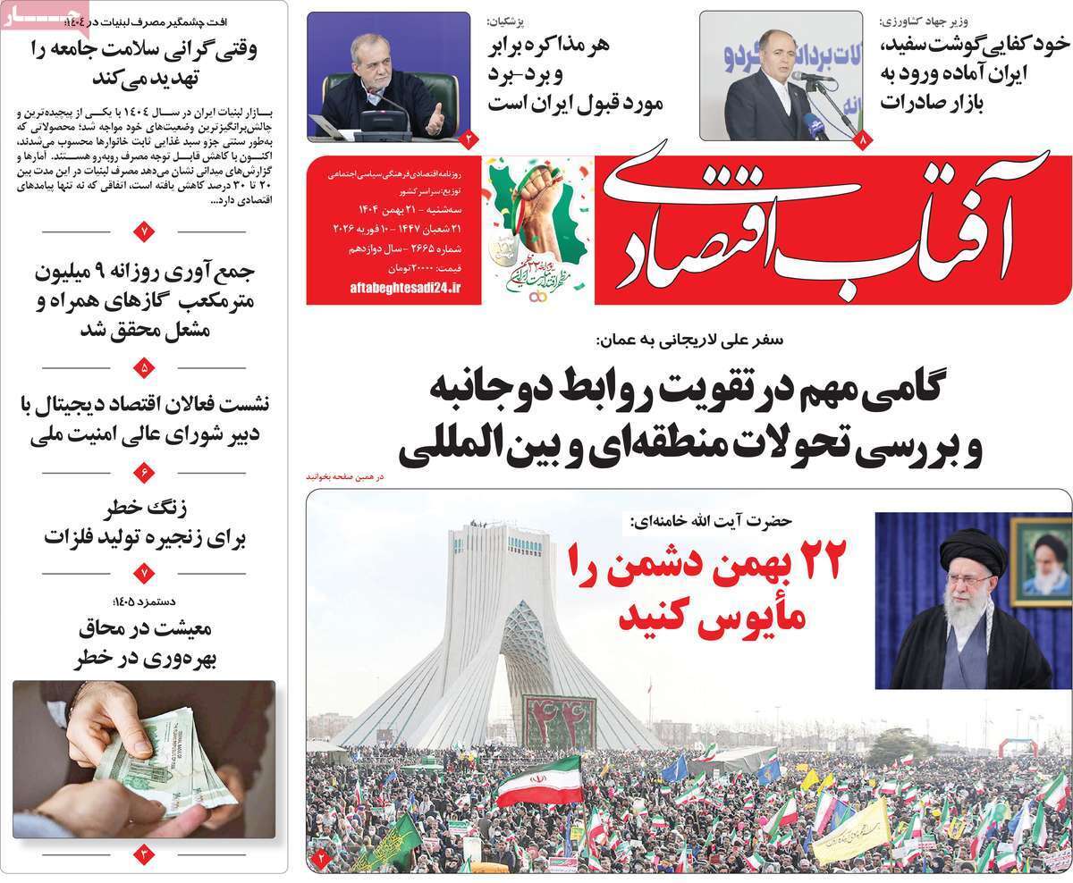 صفحات نخست روزنامههای اقتصادی کشور دنیای اقتصاد، تعادل آفتاب اقتصادی، اقتصاد ملی، اقتصاد مردم، اسکناس، ابرار اقتصادی، کسب و کار، جهان صنعت، آفتاب اقتصادی، عصر اقتصاد، جهان اقتصاد، آسیا، صمت و دنیای خودرو، امروز سه شنبه ۲۱ بهمن ماه ۱۴۰۴ را ببینید.
