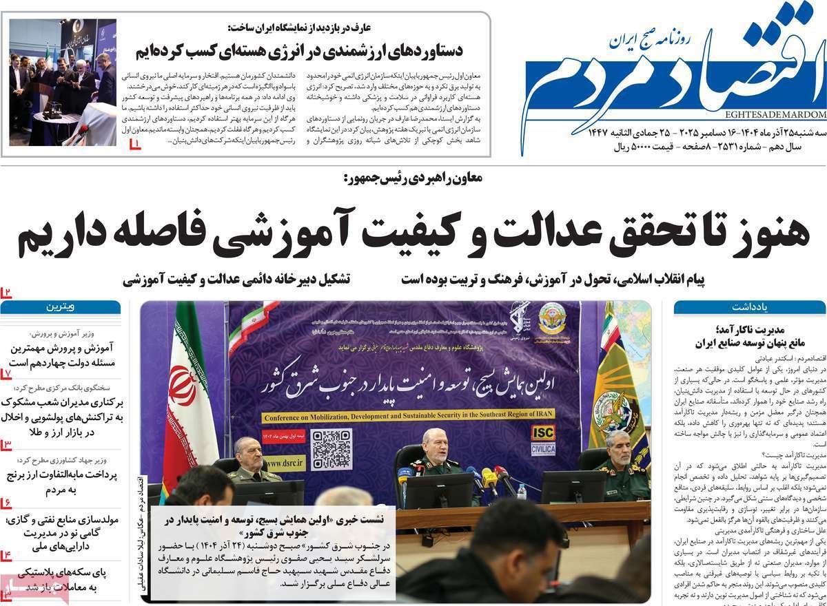 صفحه اول روزنامه‌های اقتصادی امروز ۲۵ آذر