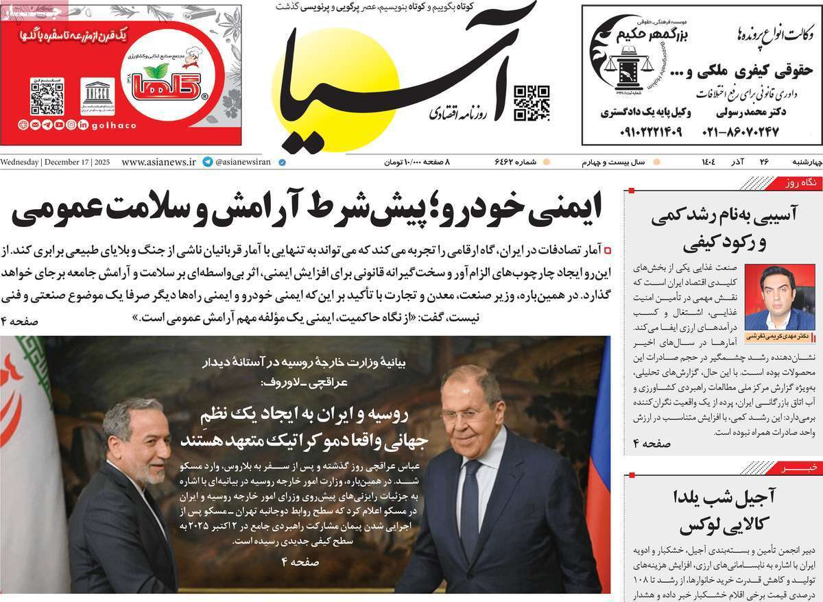 صفحه اول روزنامه‌های اقتصادی امروز ۲۶ آذر
