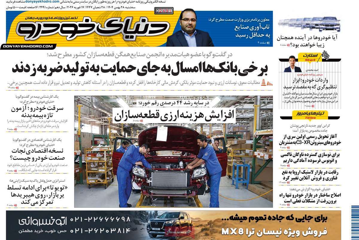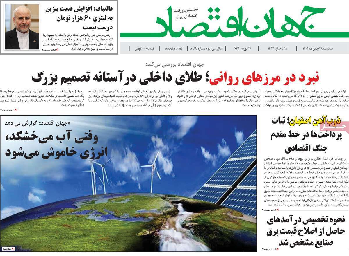 صفحات نخست روزنامههای اقتصادی کشور دنیای اقتصاد، تعادل آفتاب اقتصادی، اقتصاد ملی، اقتصاد مردم، اسکناس، ابرار اقتصادی، کسب و کار، جهان صنعت، آفتاب اقتصادی، عصر اقتصاد، جهان اقتصاد، آسیا، صمت و دنیای خودرو، امروز سه شنبه ۲۸ بهمن ماه ۱۴۰۴ را ببینید.