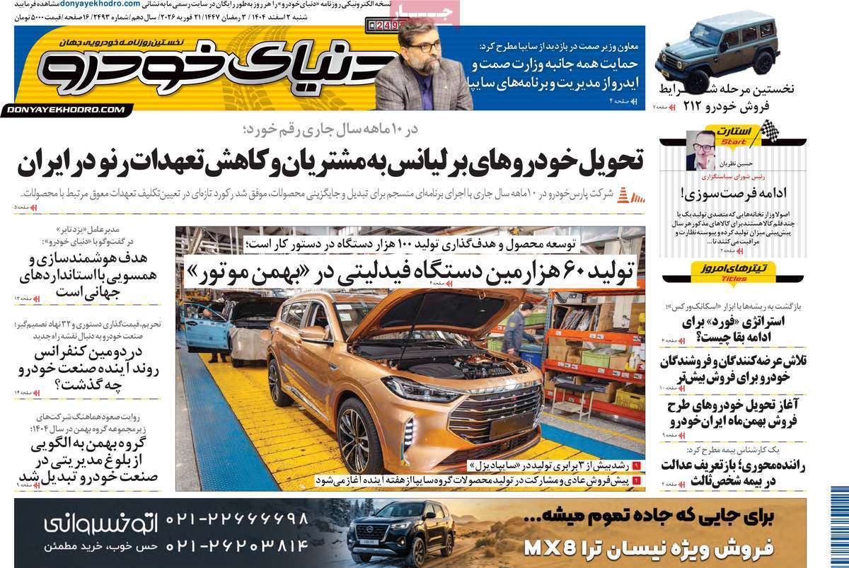 صفحات نخست روزنامههای اقتصادی کشور دنیای اقتصاد، تعادل آفتاب اقتصادی، اقتصاد ملی، اقتصاد مردم، اسکناس، ابرار اقتصادی، کسب و کار، جهان صنعت، آفتاب اقتصادی، عصر اقتصاد، جهان اقتصاد، آسیا، صمت و دنیای خودرو، امروز شنبه ۲ اسفند ماه ۱۴۰۴ را ببینید.