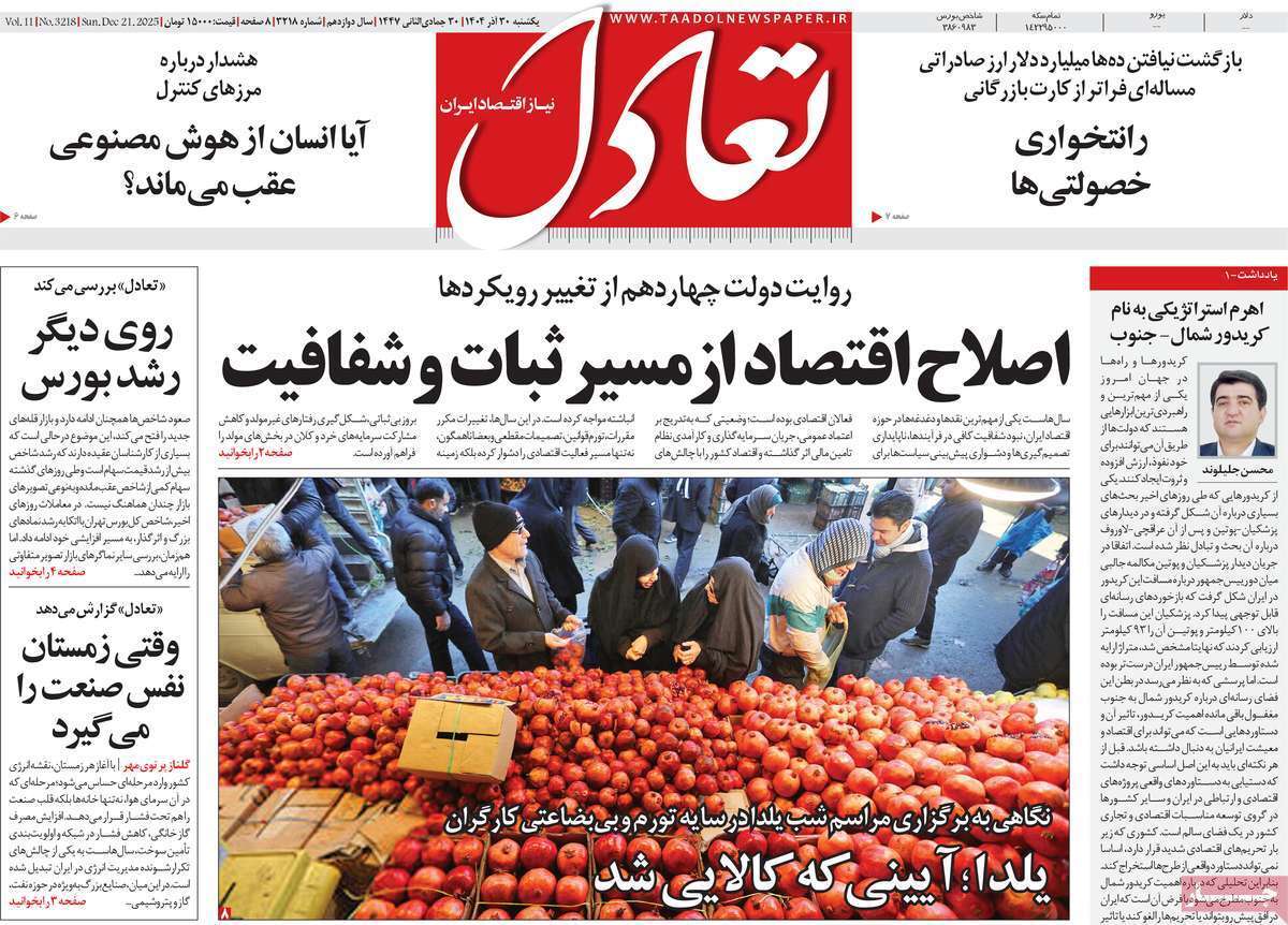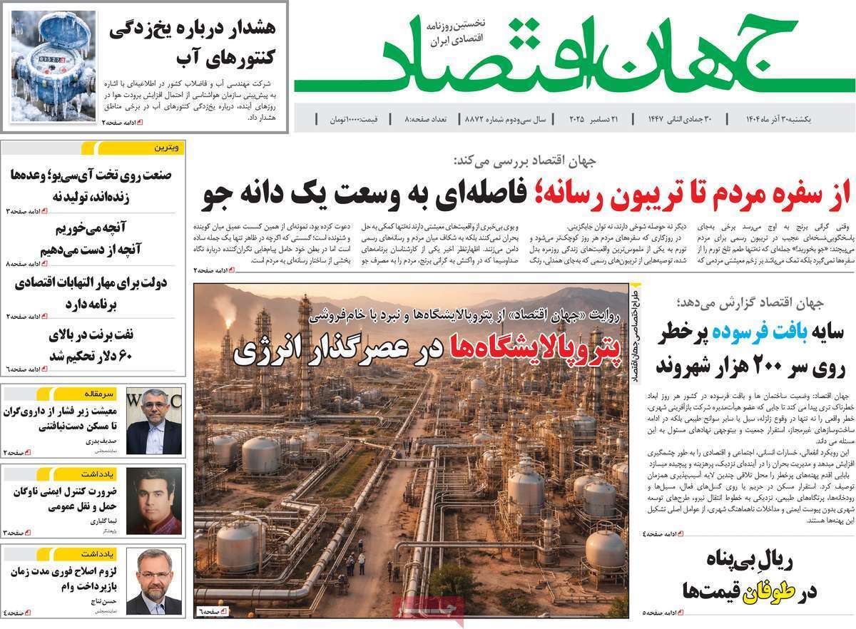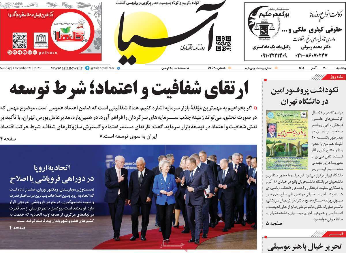 صفحات نخست روزنامههای اقتصادی کشور دنیای اقتصاد، تعادل آفتاب اقتصادی، اقتصاد ملی، اقتصاد مردم، اسکناس، ابرار اقتصادی، کسب و کار، جهان صنعت، آفتاب اقتصادی، عصر اقتصاد، جهان اقتصاد، آسیا، صمت و دنیای خودرو، امروز یکشنبه ۳۰ آذرماه ۱۴۰۴ را ببینید.