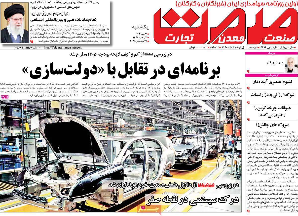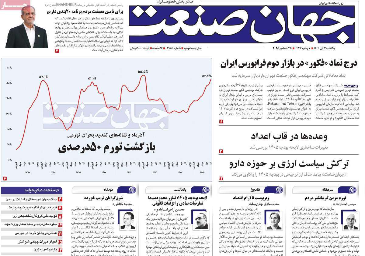 صفحات نخست روزنامههای اقتصادی کشور دنیای اقتصاد، تعادل آفتاب اقتصادی، اقتصاد ملی، اقتصاد مردم، اسکناس، ابرار اقتصادی، کسب و کار، جهان صنعت، آفتاب اقتصادی، عصر اقتصاد، جهان اقتصاد، آسیا، صمت و دنیای خودرو، امروز یکشنبه ۷ دی ماه ۱۴۰۴ را ببینید.