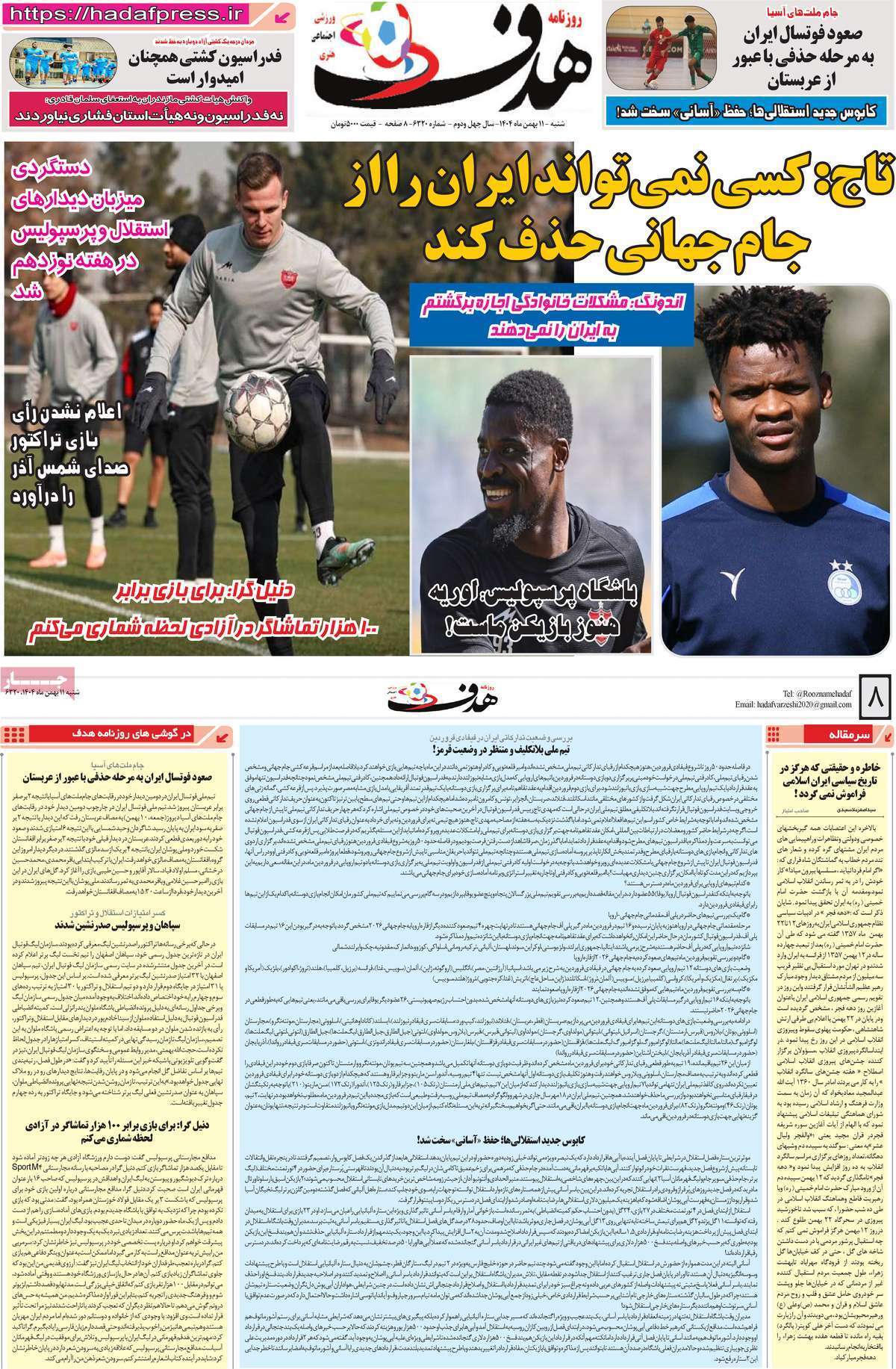 صفحه اول روزنامههای ورزشی امروز ۱۱ بهمن