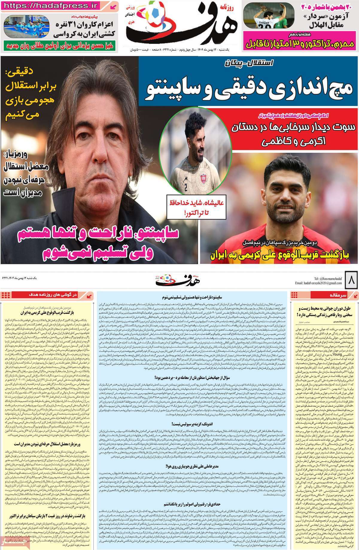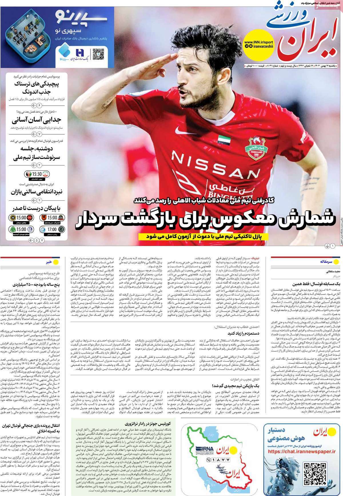 صفحه اول روزنامههای ورزشی امروز ۱۲ بهمن