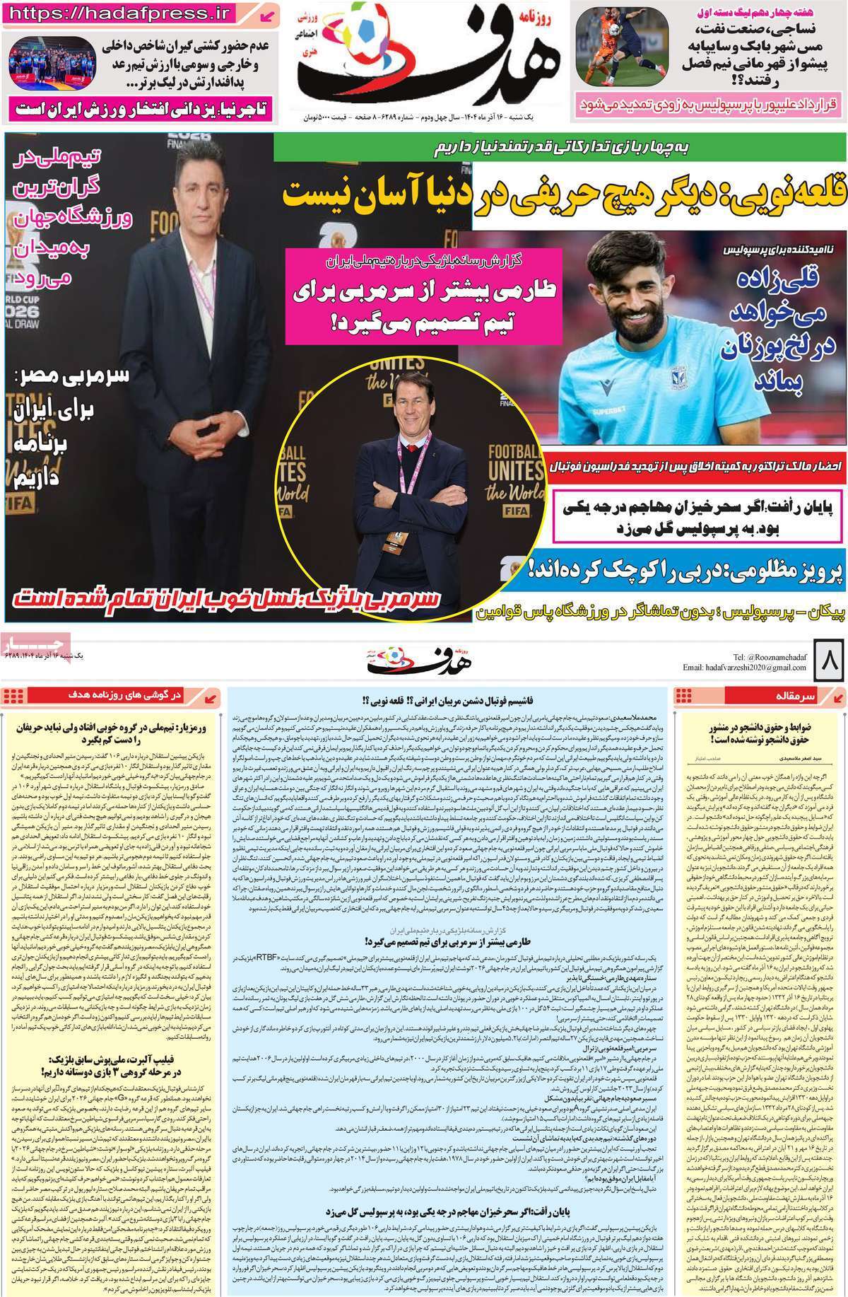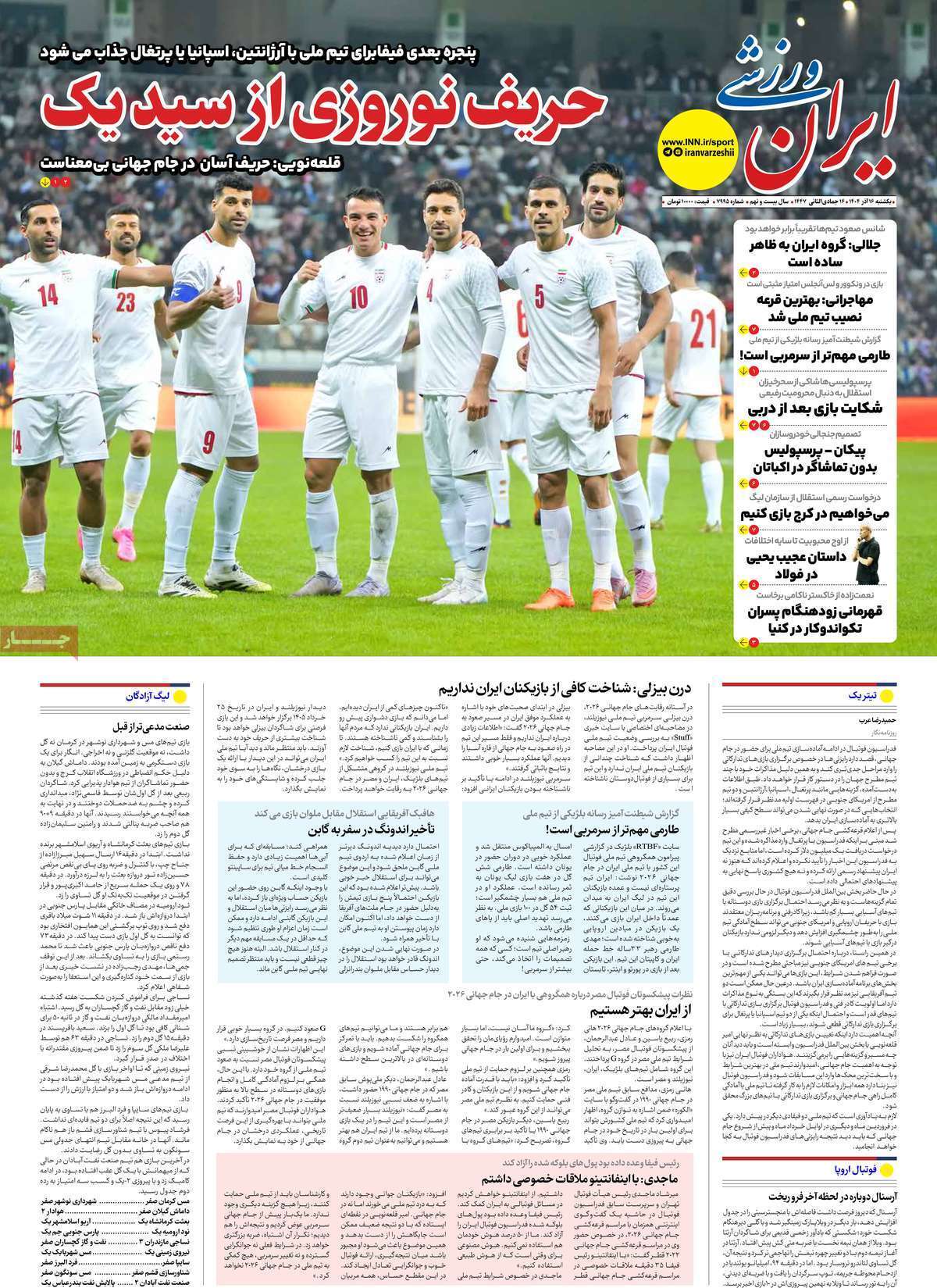 صفحه اول روزنامههای ورزشی امروز ۱۶ آذر
