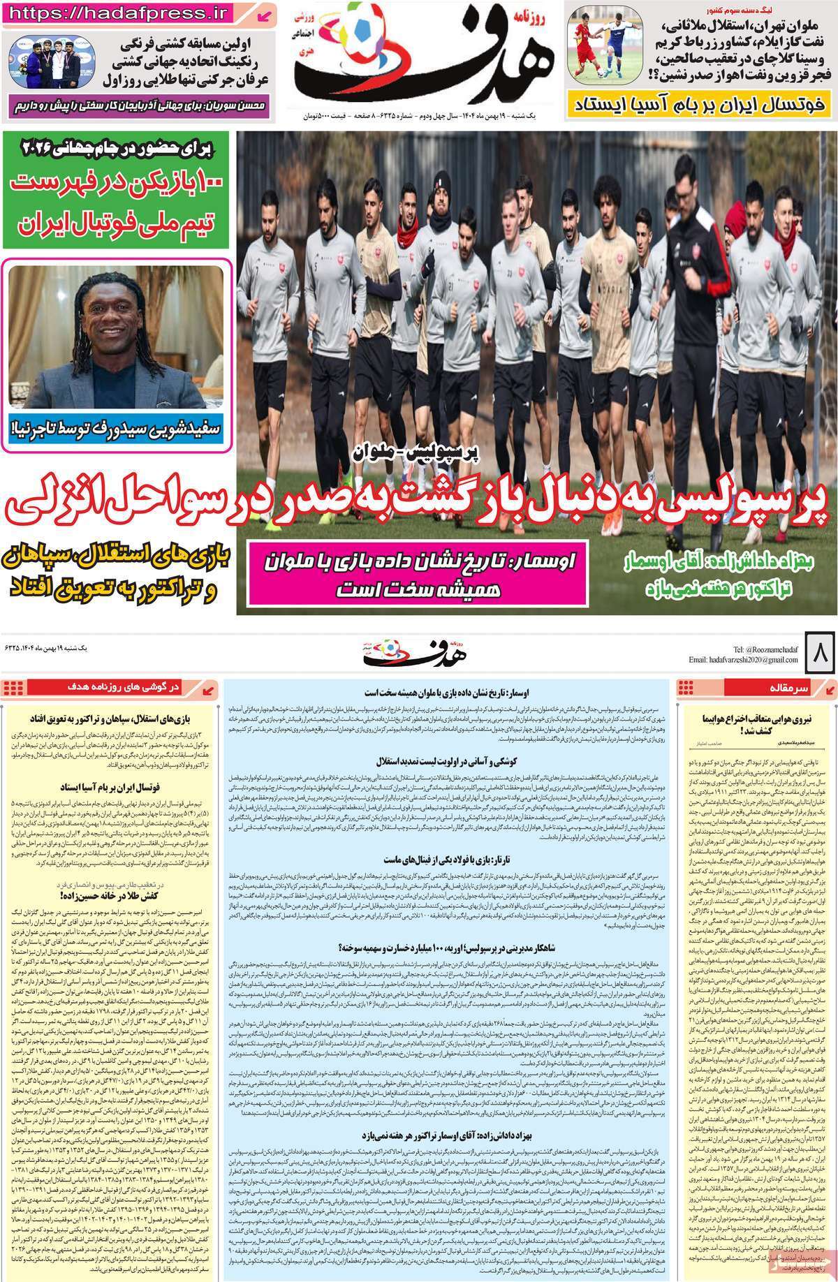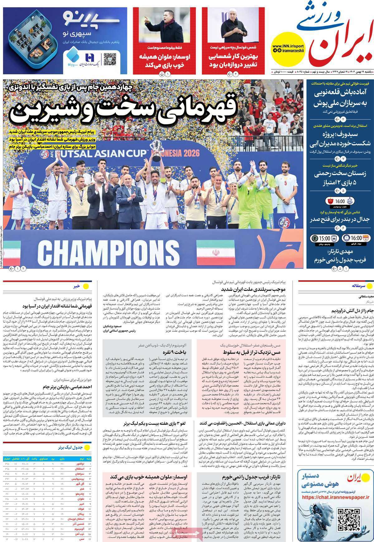 صفحه اول روزنامههای ورزشی امروز ۱۹ بهمن