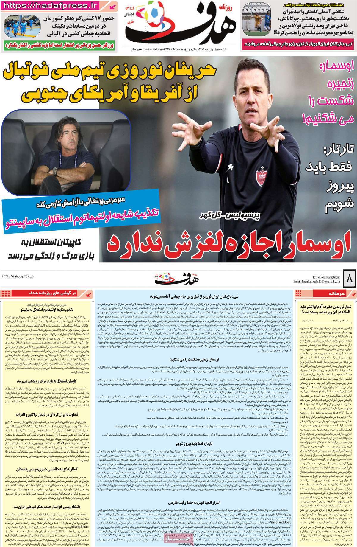 صفحه اول روزنامههای ورزشی امروز ۲۵ بهمن