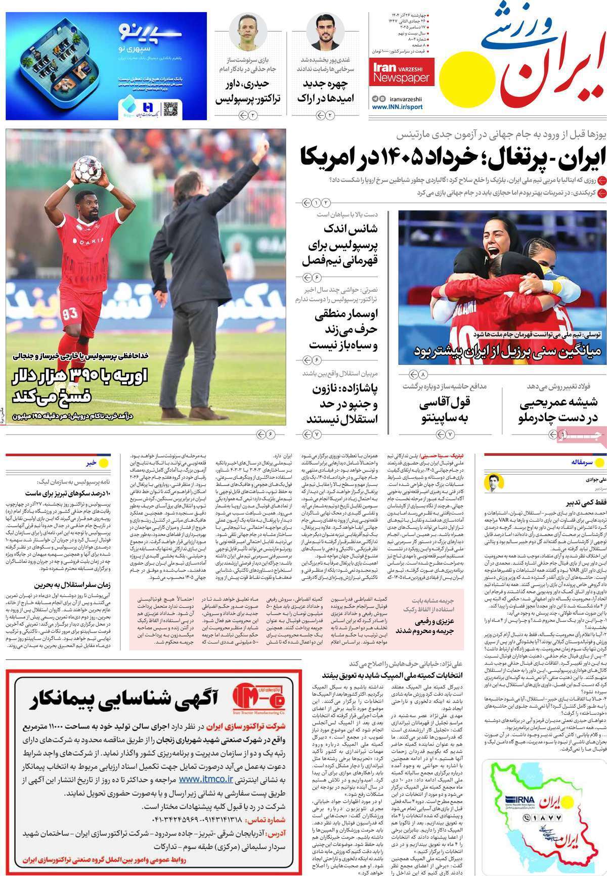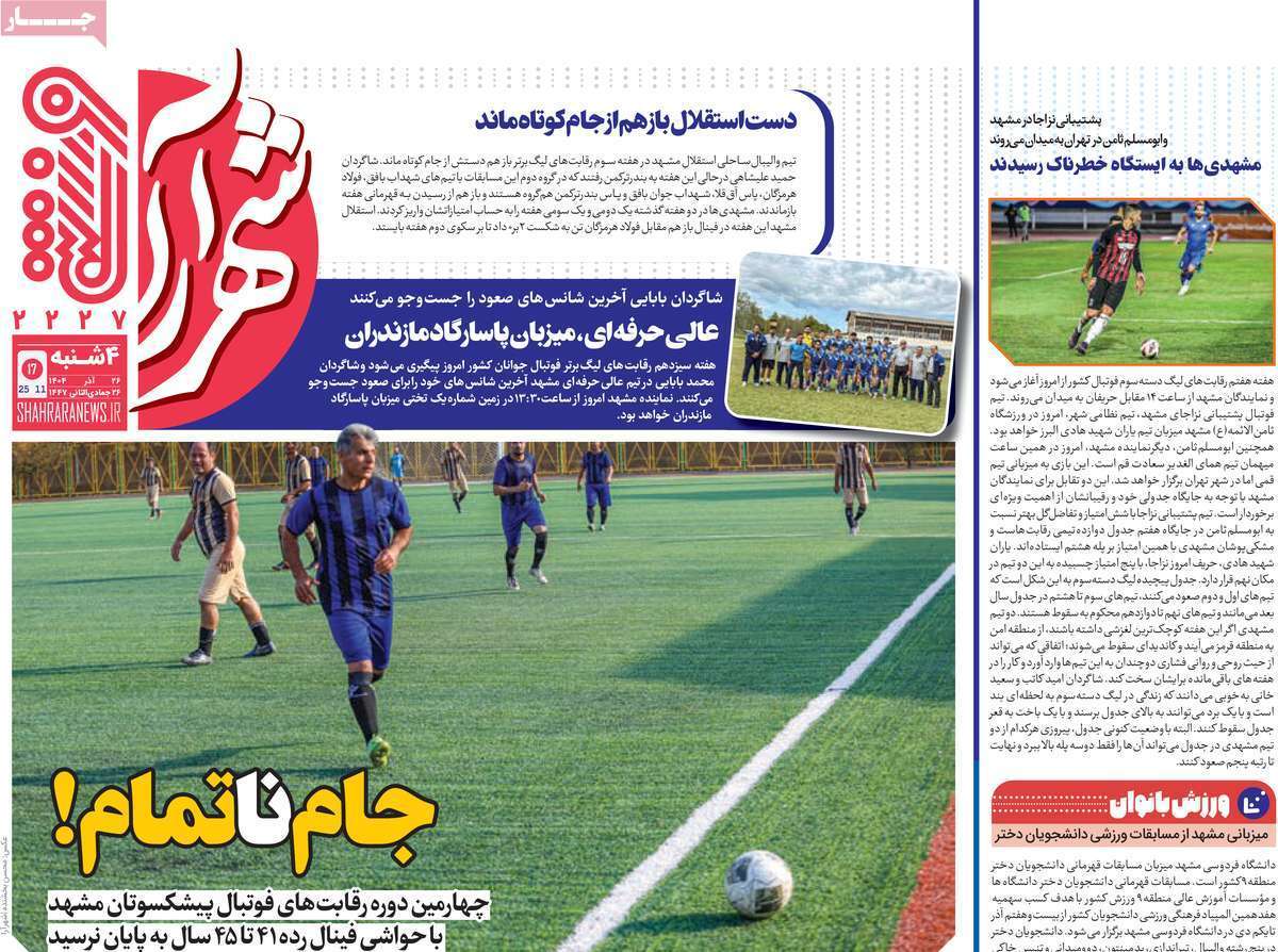 صفحه اول روزنامههای ورزشی امروز ۲۶ آذر