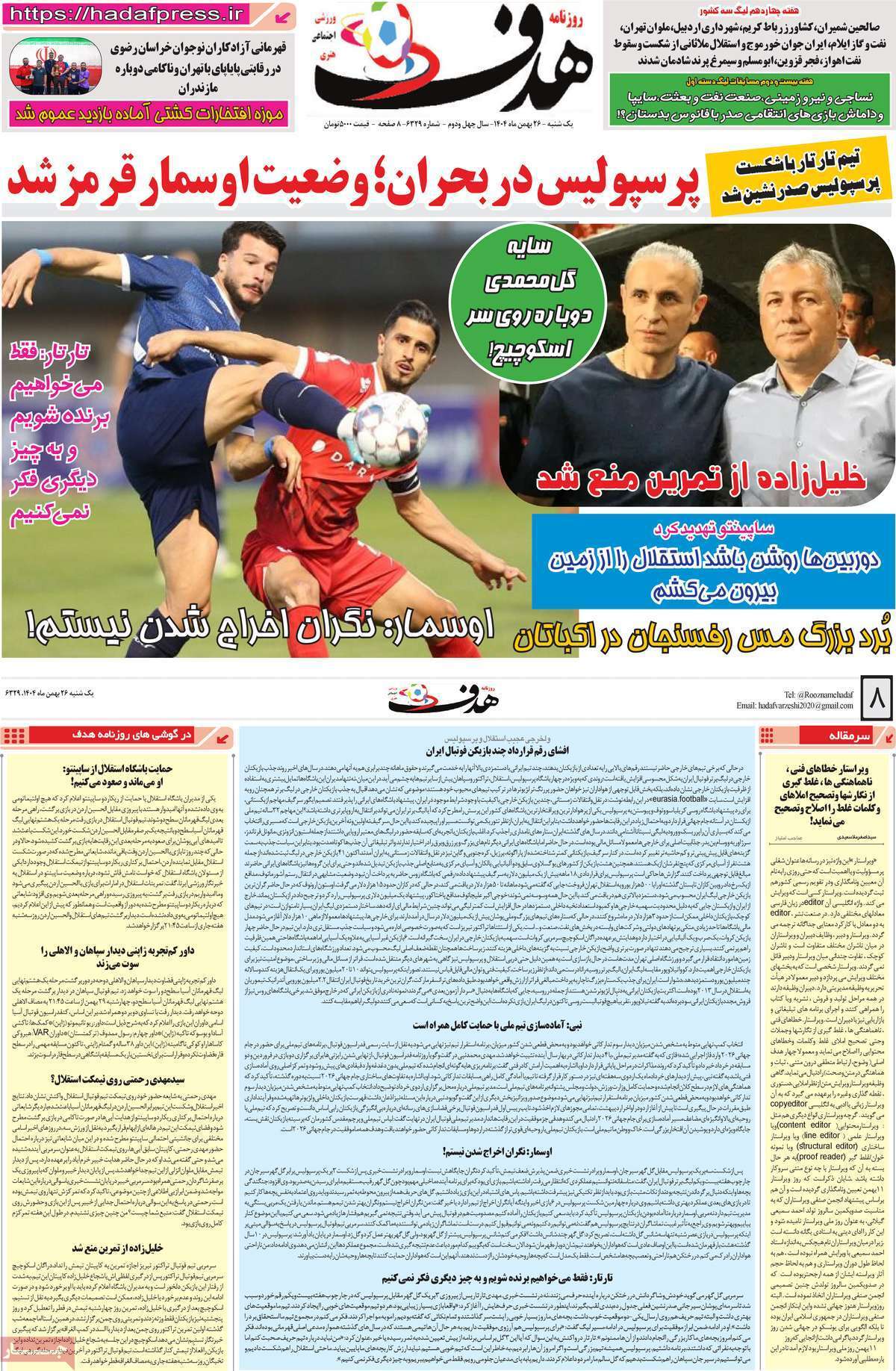 صفحه اول روزنامه‌های ورزشی امروز ۲۶ بهمن