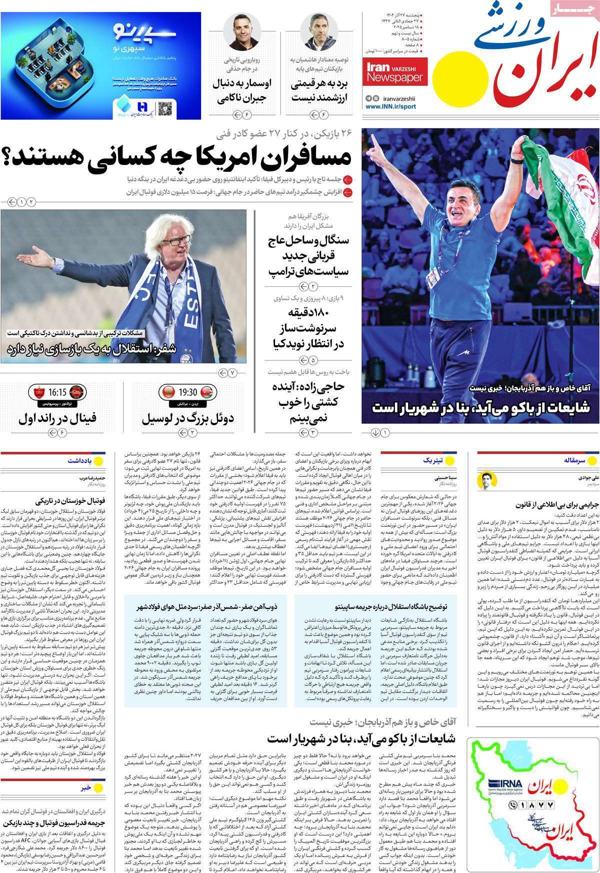 صفحه اول روزنامههای ورزشی امروز ۲۷ آذر