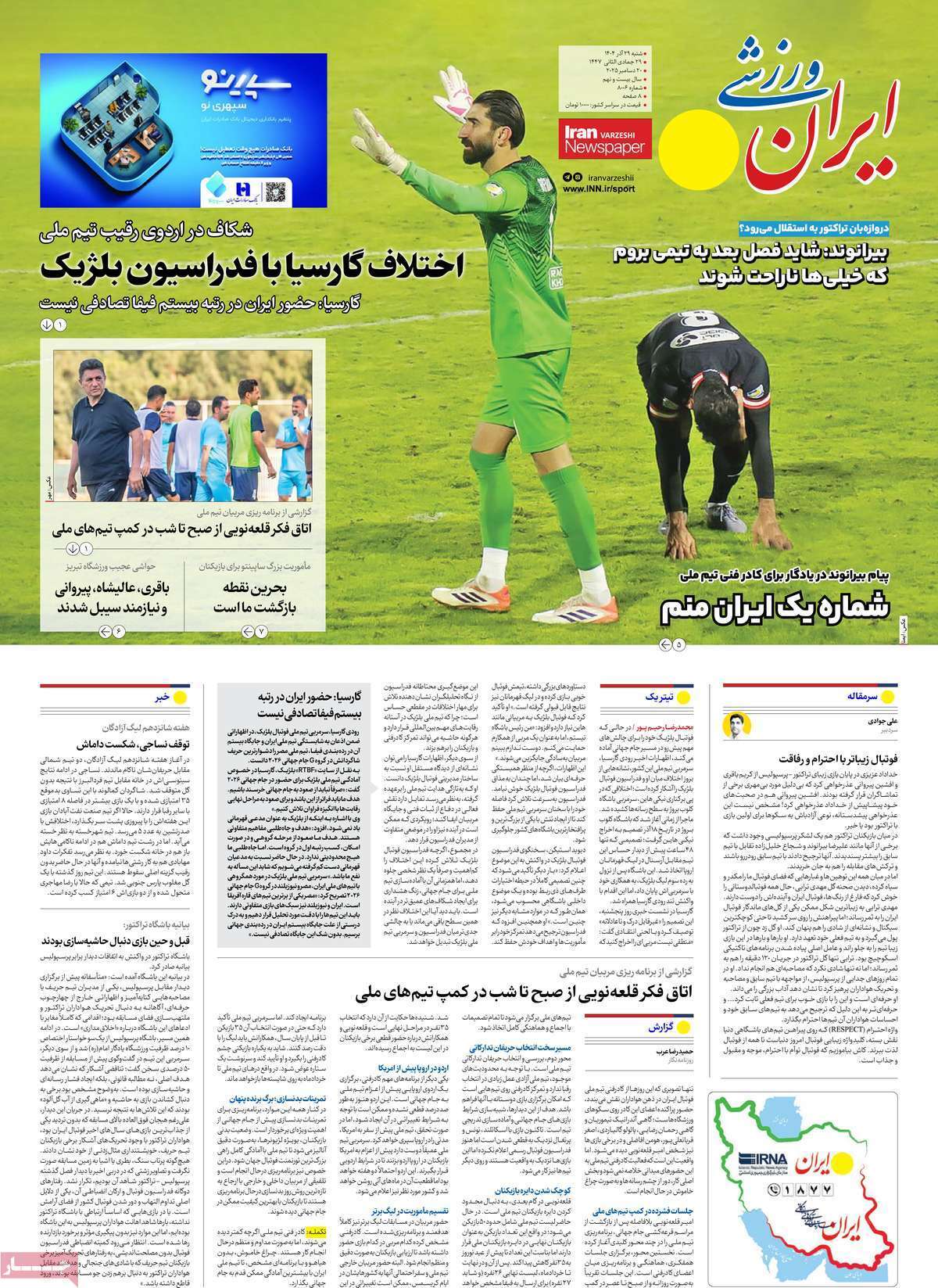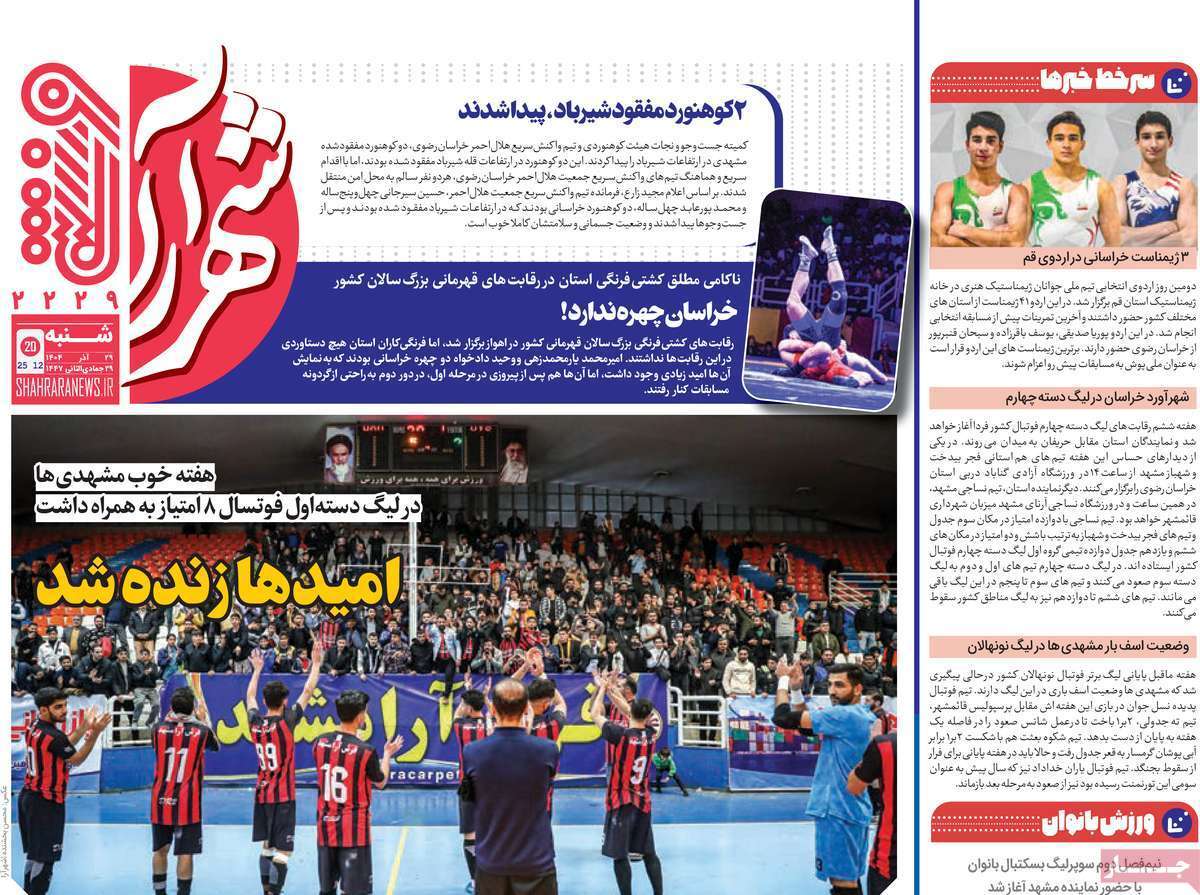 صفحه اول روزنامههای ورزشی امروز ۲۹ آذر