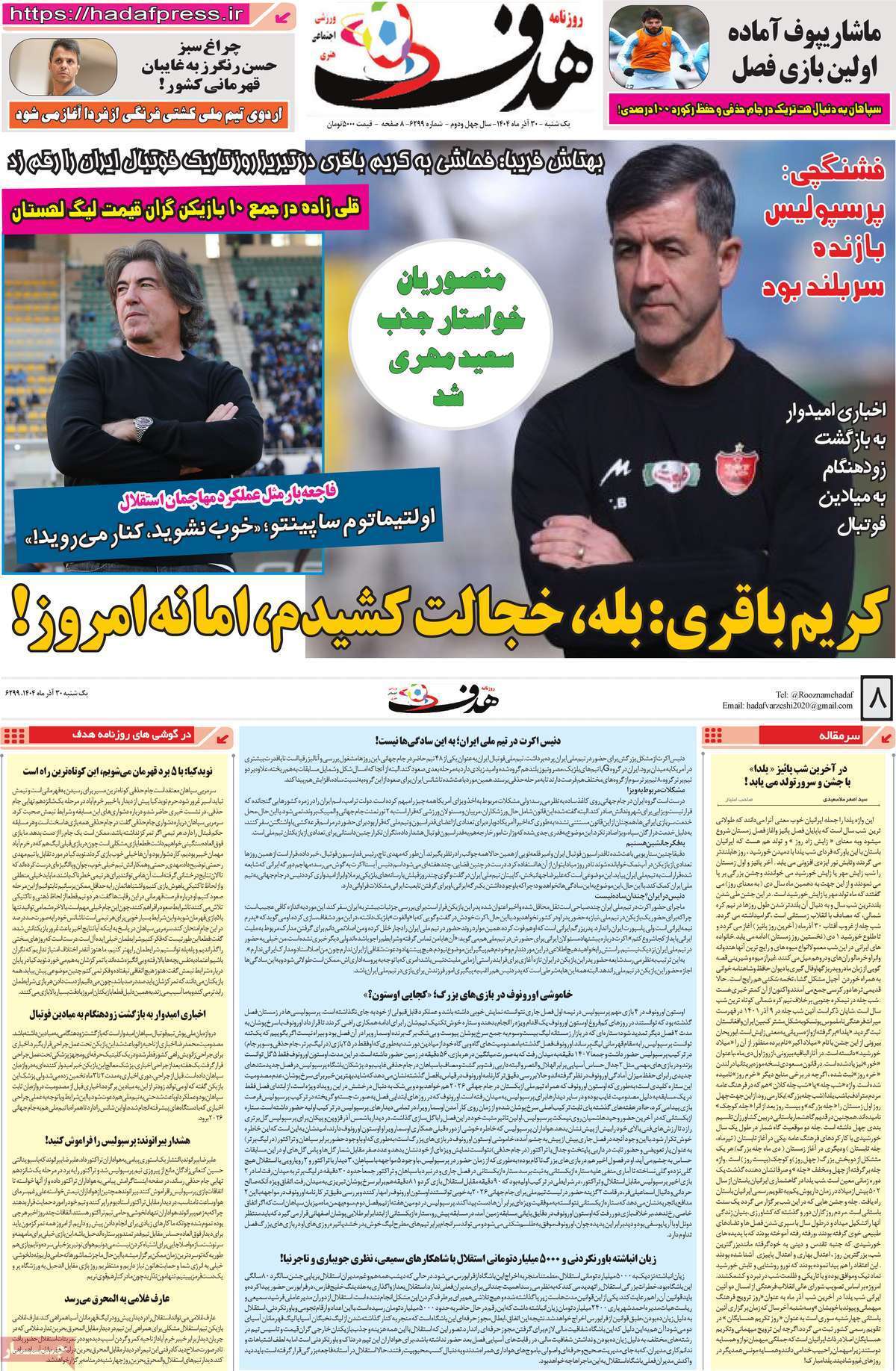 صفحه اول روزنامههای ورزشی امروز ۳۰ آذر