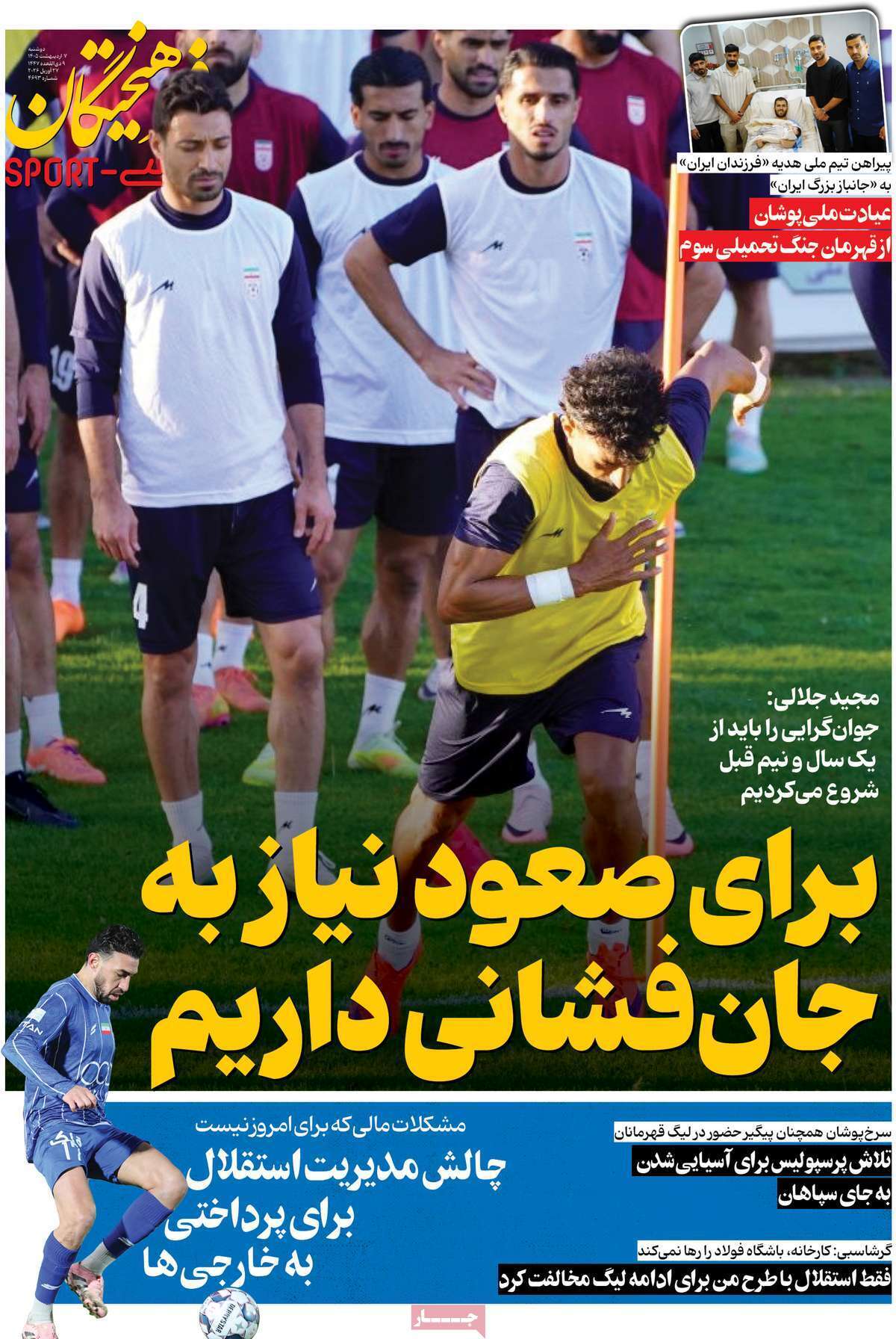 صفحه اول روزنامههای ورزشی امروز ۷ اردیبهشت