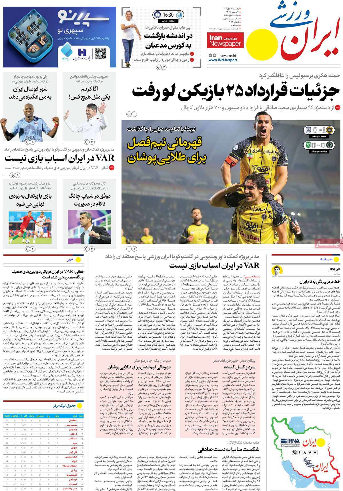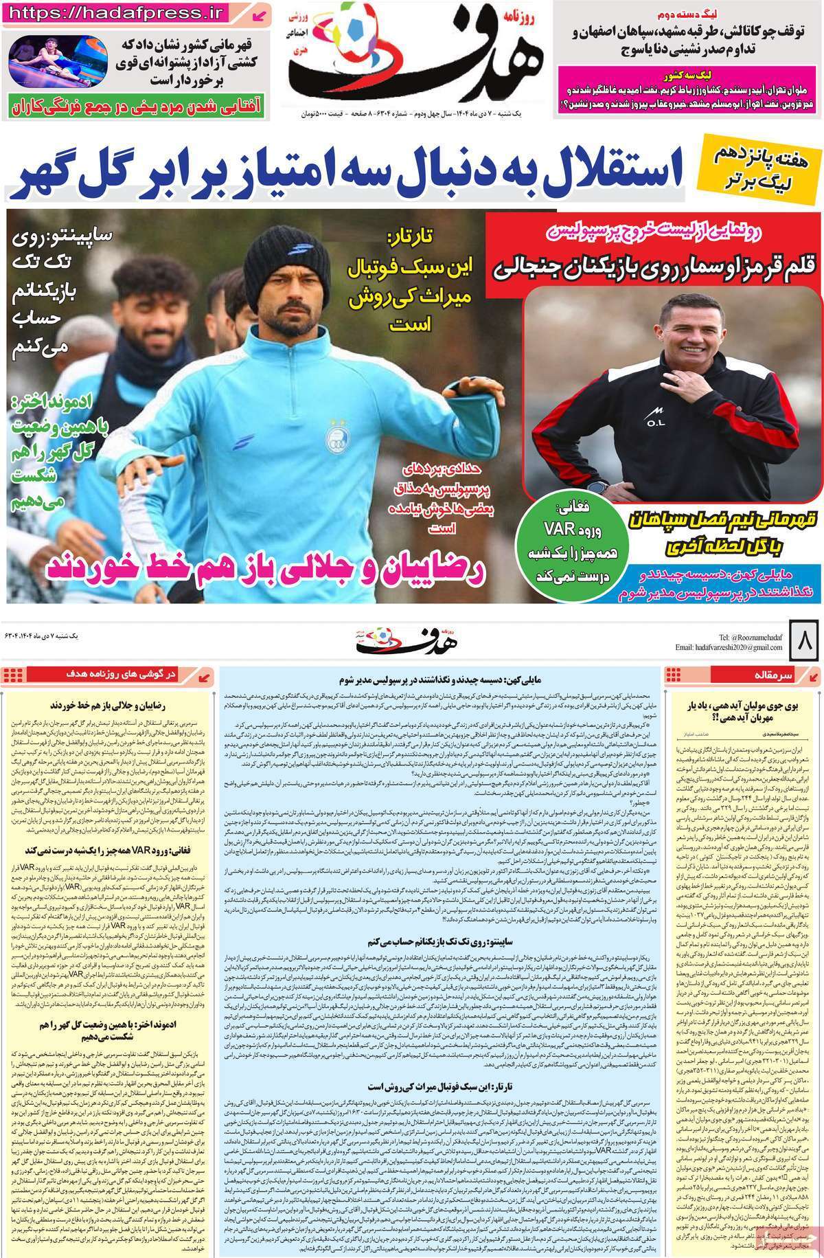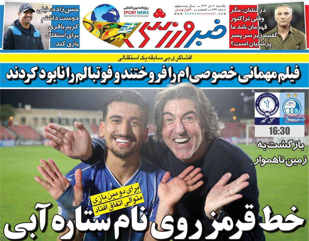 صفحه اول روزنامه‌های ورزشی امروز ۷ دی