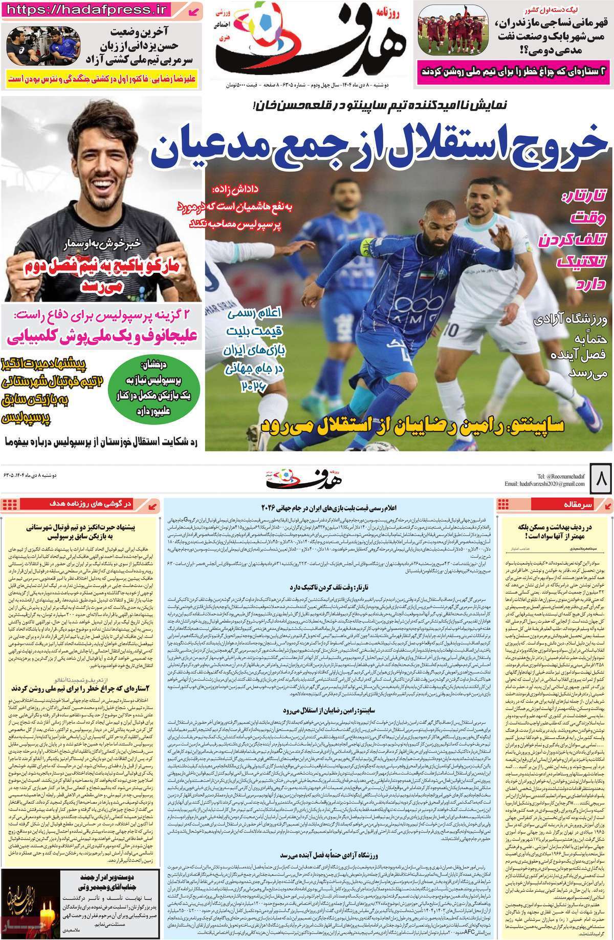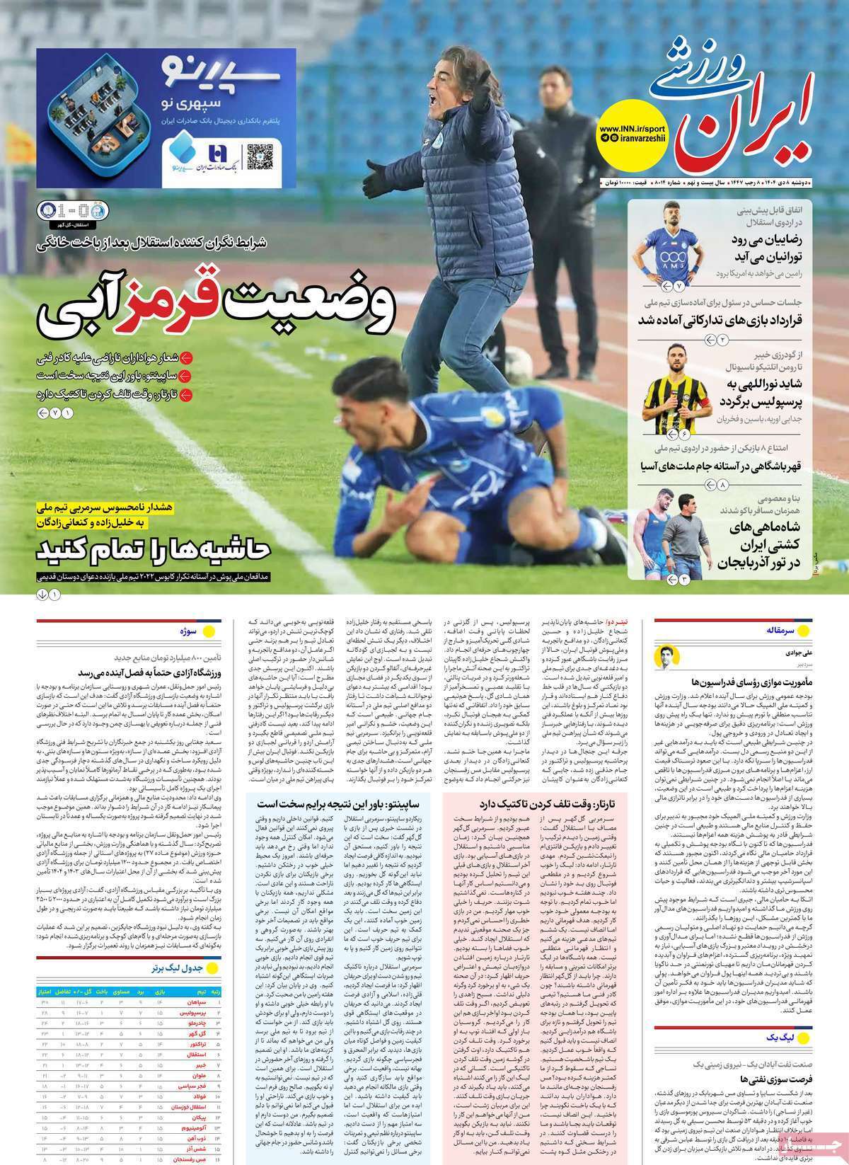 صفحه اول روزنامههای ورزشی امروز ۸۷ دی