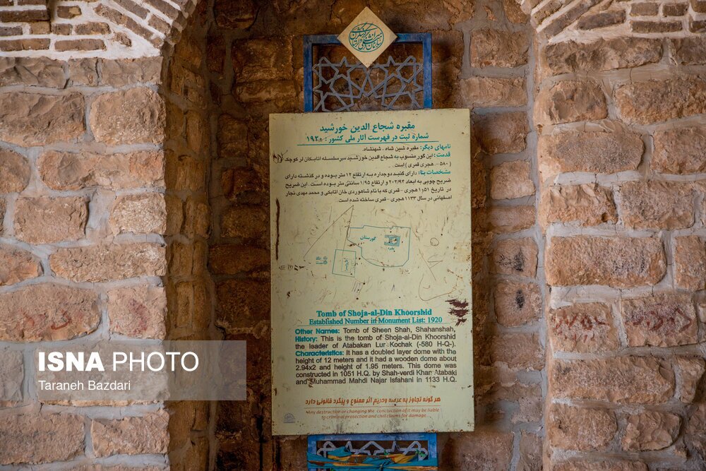 مجموعه مقبره «شهنشاه» باقی مانده از صفویه، در روستای «گوشه شهنشاه» یا «شینشاه» در شهرستان خرم‌آباد قرار گرفته است. این مجموعه مقبره که در شهریور ۱۳۷۶ در فهرست آثار ملی کشور به ثبت رسیده، به دلیل قرار گرفتن در بقعه شجاع‌الدین خورشید (ﺳﺮﺳﻠﺴﻠﻪ ﺍﺗﺎﺑﮑﺎﻥ ﻟﺮ) به گوشه شهنشاه نیز مشهور است. در کنار این آرامگاه، گورستان قدیمی با سنگ قبر‌های کهنی وجود دارد که روی آن‌ها آیاتی از قرآن کریم و کلمات مقدس با نقش‌های برجسته و خطوط کوفی کنده‌کاری شده است. این آرامگاه در زمان شاهوردیخان آخرین اتابک لر ساخته شده و شجاع‌الدین خورشید به مدت ۳۰ سال از اواخر قرن پنجم تا اوایل قرن ششم بر ایالات لر کوچک فرمانروایی کرده است. روستای «گوشه شهنشاه» ﺩﻭ ﺩﺭﺧﺖ ﺑﻨﻪ (ﺗﻮﺕ ﻭ سرو ﺯﺭﺑﯿﻦ) را نیز در فهرست میراث طبیعی کشور دارد.