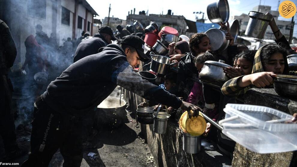 در حالی که حملات اسرائیل به نوار محاصره شده غزه بدون وقفه ادامه دارد، فلسطینیها به دلیل تحریمهایی که بر منطقه اعمال میکند، با گرسنگی دست و پنجه نرم میکنند. فلسطینیهایی که از این حملات فرار کرده و در شهر رفح پناه گرفته اند، ساعتها در صف میایستند تا مواد غذایی توزیع شده توسط خیریهها را دریافت کنند. به نظر میرسد رژیمصهیونیستی با ناکامی در نقشه کوچ اجباری ملت فلسطین، حالا در حال اجرای طرح گرسنگی علیه نوار غزه است. این در حالی است که به رغم درخواستهای مکرر جامعه جهانی مبنی بر آتش فوری در غزه این رژیم از پذیرش آن خودداری کرده است. سازمان ملل و سایر نهادهای مستقل امدادرسان بارها هشدار داده اند که خطر گرسنگی در غزه روز به روز در حال افزایش است. براساس گزارشی که برنامه جهانی منتشر کرد از هر چهار خانوار در غزه، یک خانواده در معرض گرسنگی شدید قرار دارد.