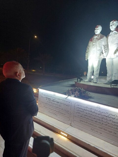 عکس/ ظریف در محل یادمان شهادت سردار سلیمانی و ابومهدی المهندس در عراق