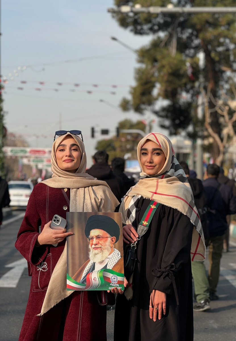 عکس/ حاشیه کیف گوچی و گوشی آیفون دو دختر در راهپیمایی ۲۲ بهمن