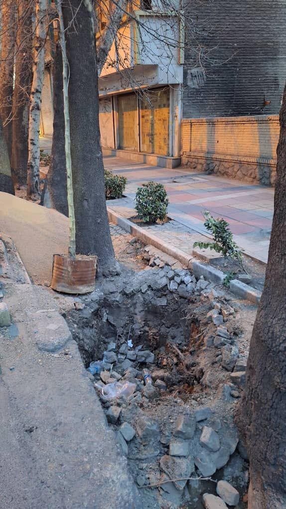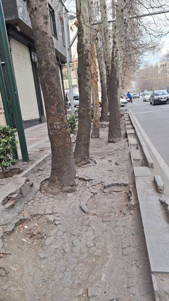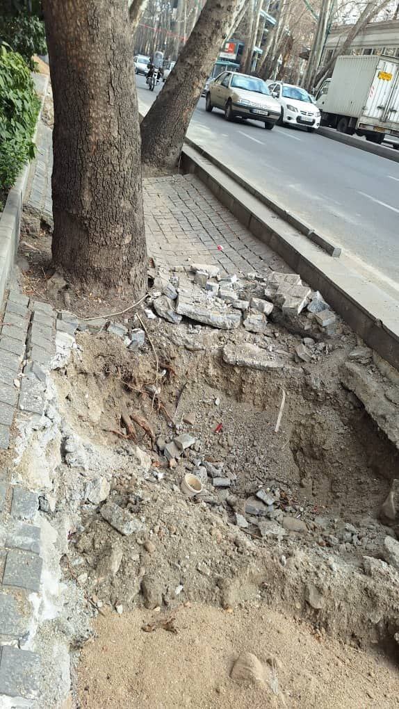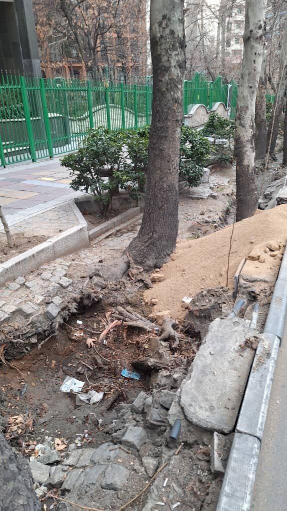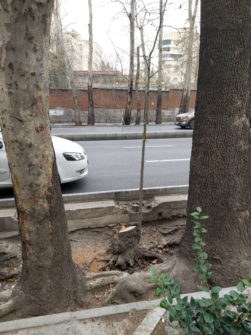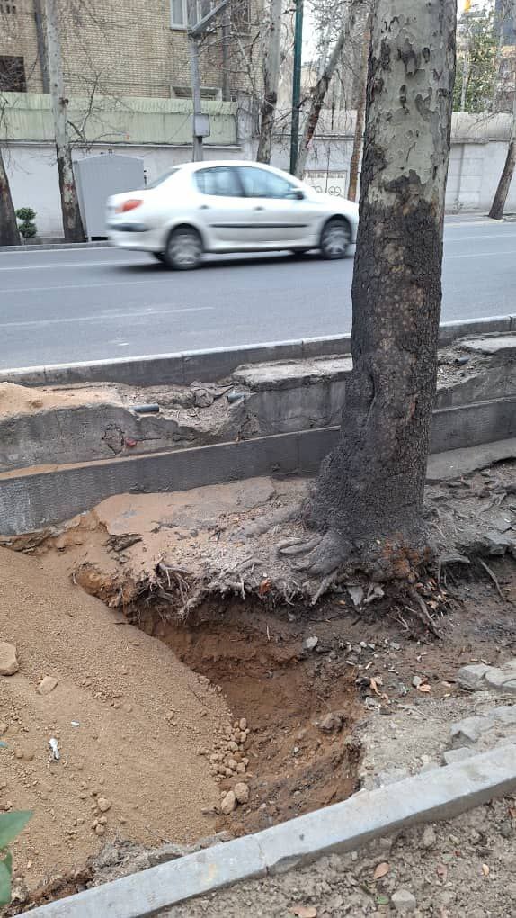 آسیب‌های وارده به درختان خیابان ولیعصر بدین شرح است: گودبرداری و ساخت برج ۱۹ طبقه (۹ طبقه زیرزمین و ۱۰ طبقه روی زمین) توسط شرکت عمران گستر بصیر، بدون رعایت حد تراکم و بدون حفاظت از درختان، کنده کنی و آسیب به ریشه درختان مجاور، سنگفرش‌های نفوذناپذیر و ضعیف شدن درختان به علت نرسیدن آب، هوا و مواد مغذی و قطع آبیاری درختان باغ فردوس و نفوذناپذیر کردن دور درختان.
