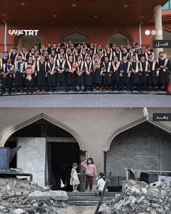 عکس/ دانشگاه اسلامی غزه قبل و بعد از جنگ