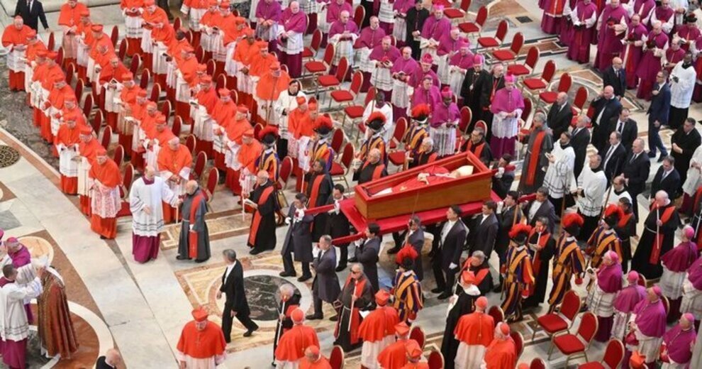 مراسم خاکسپاری رهبر کاتولیکهای جهان از دقایقی پیش در کلیسای سنپیترو واقع در پایتخت ایتالیا آغاز شد.
