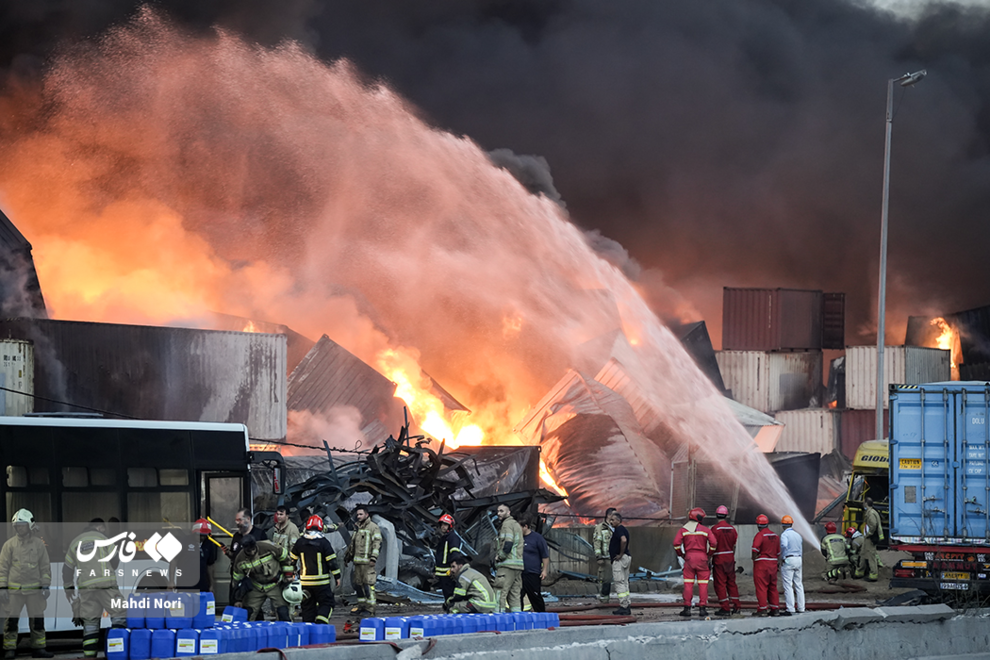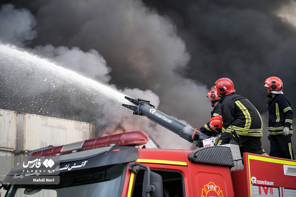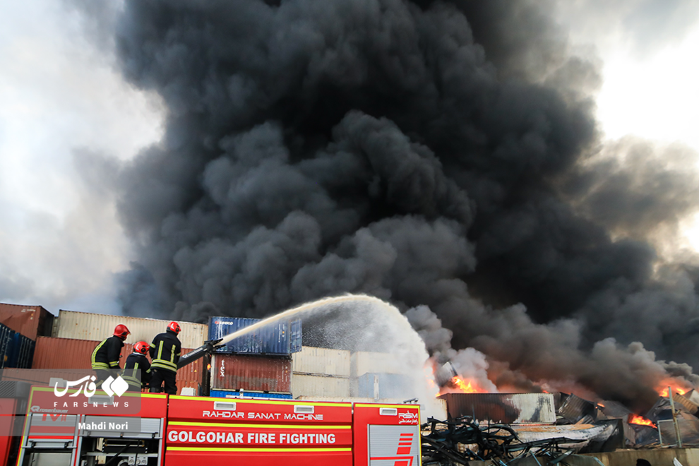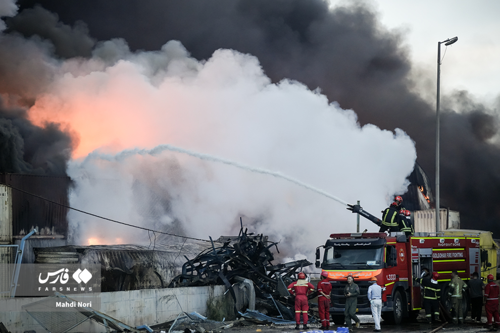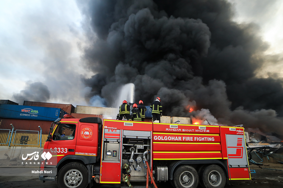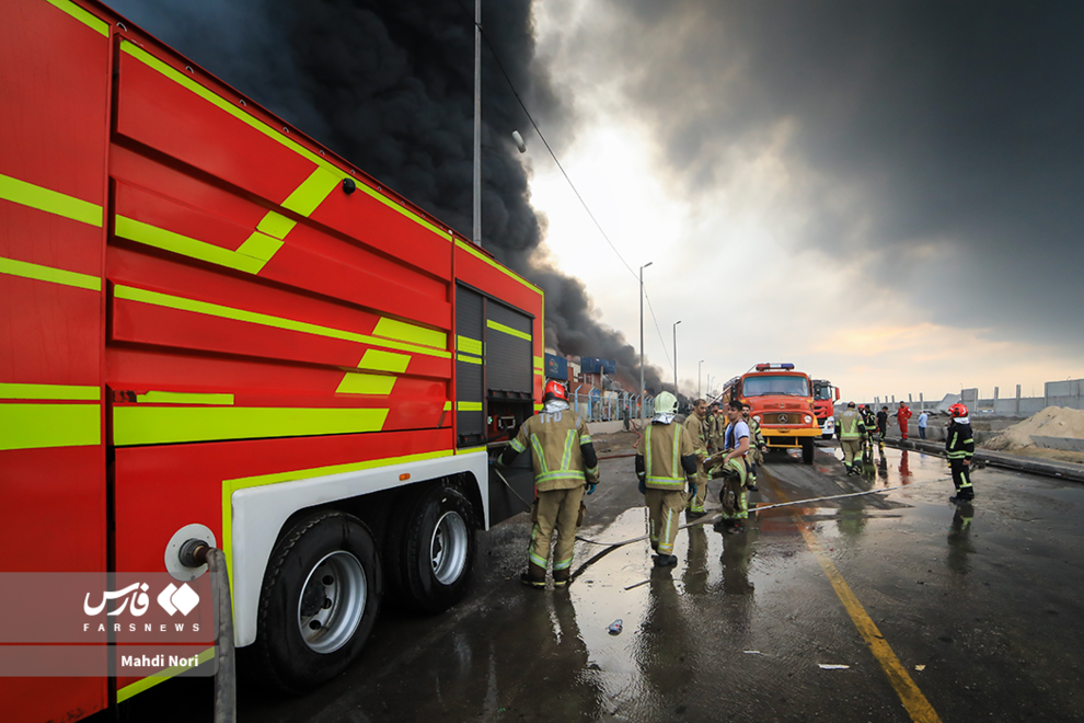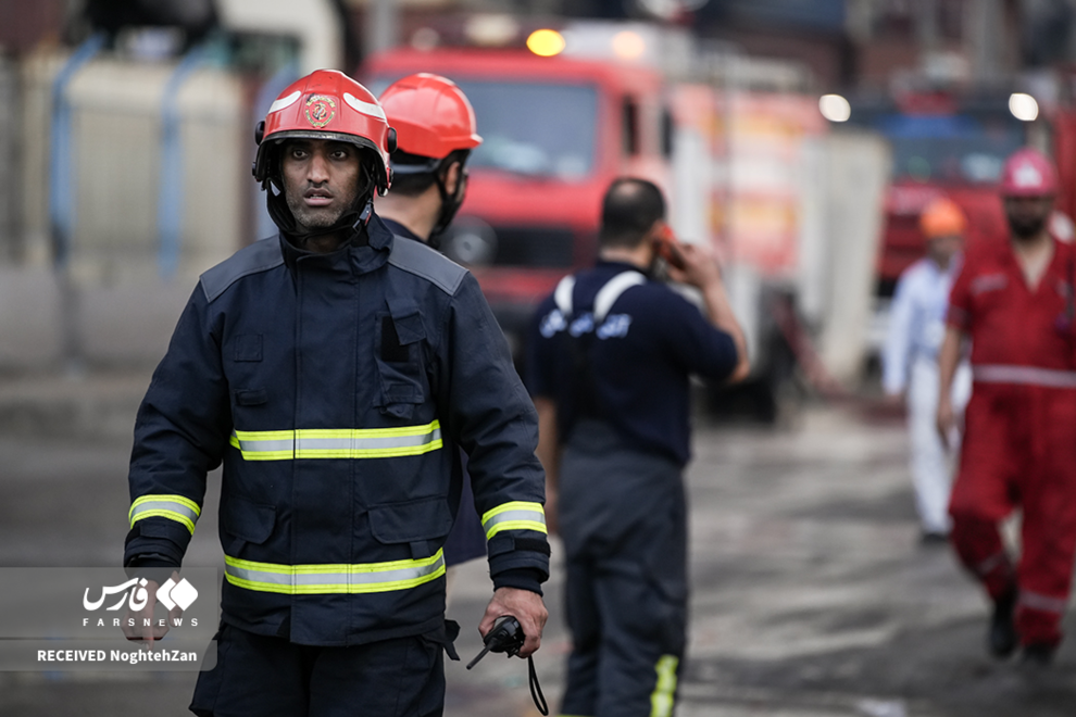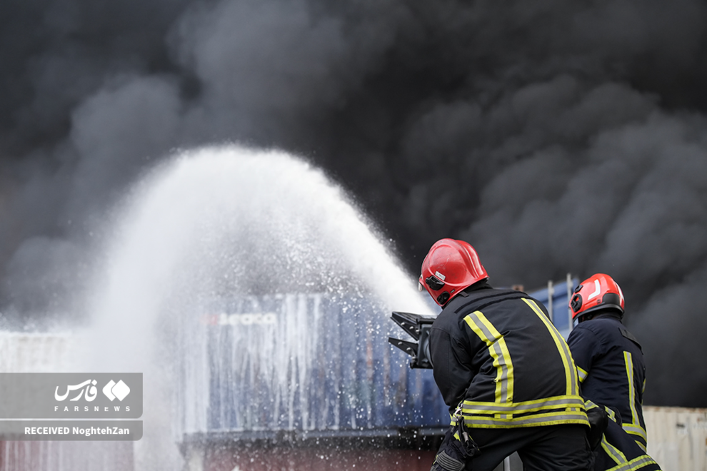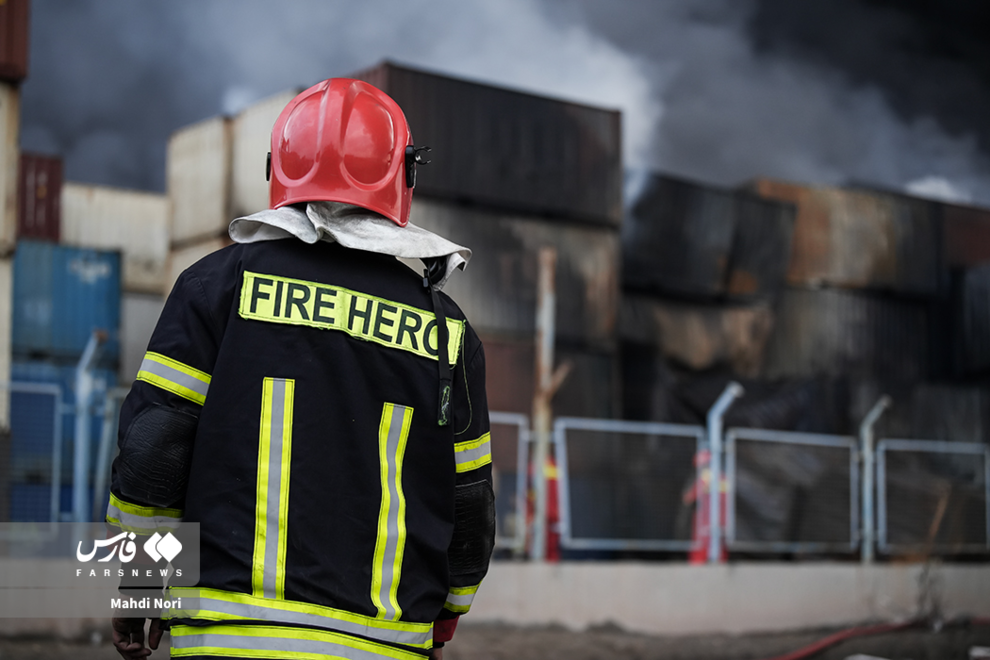 عملیات اطفای آتش در بندر شهید رجایی