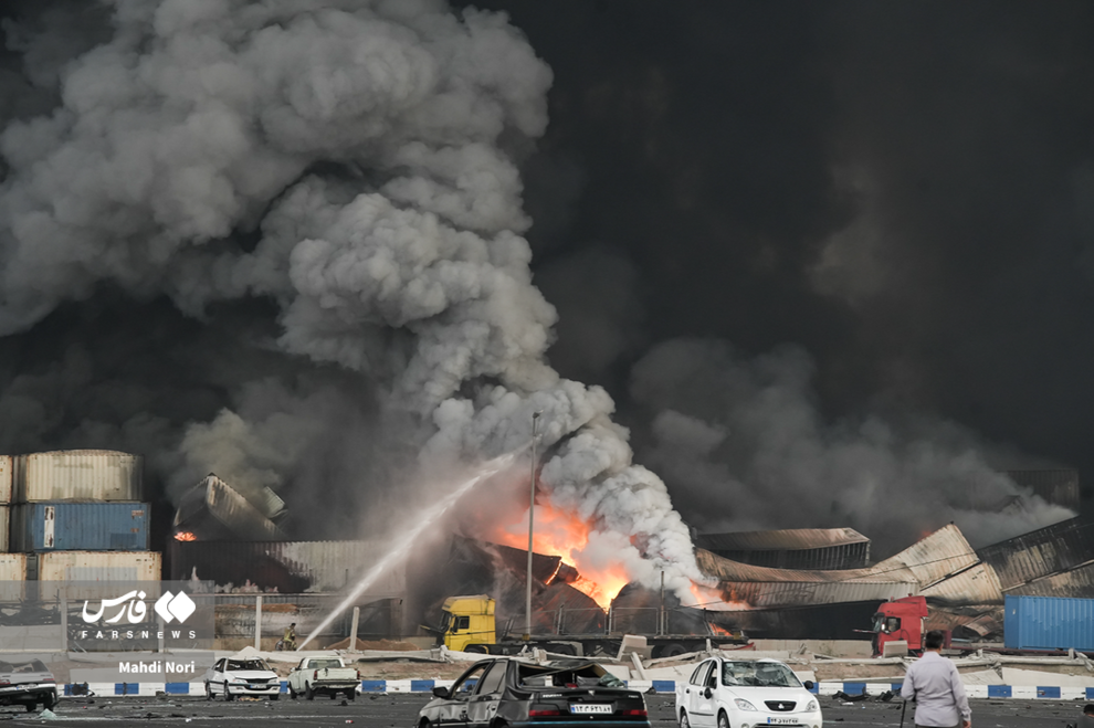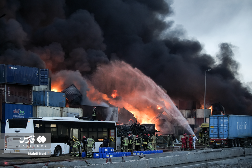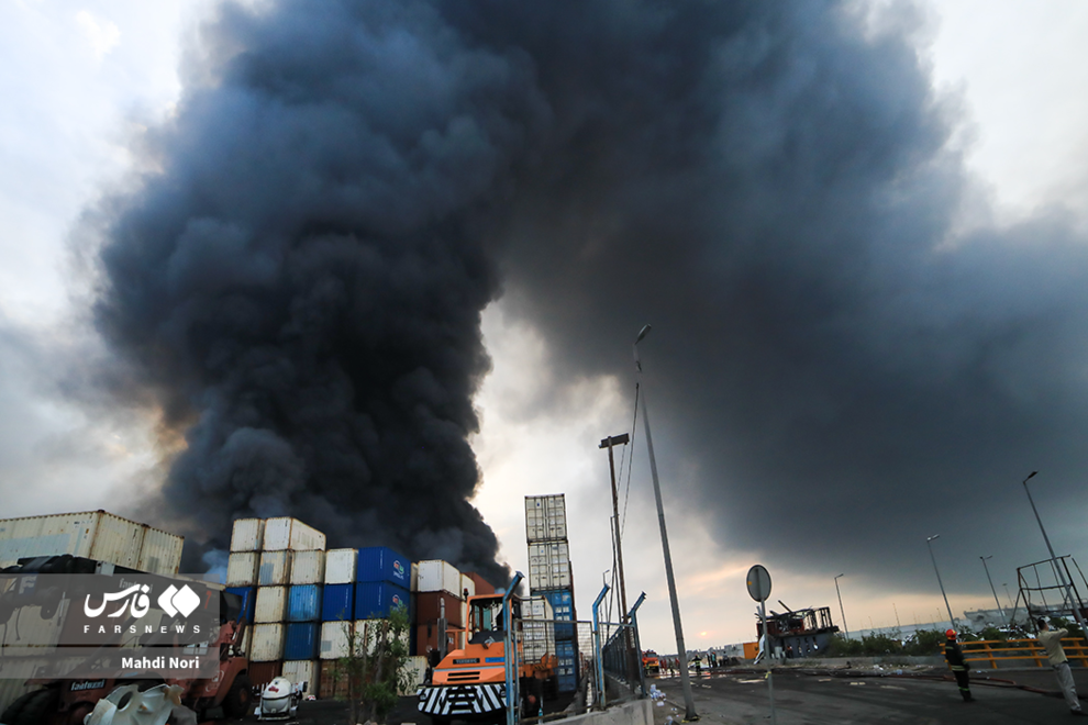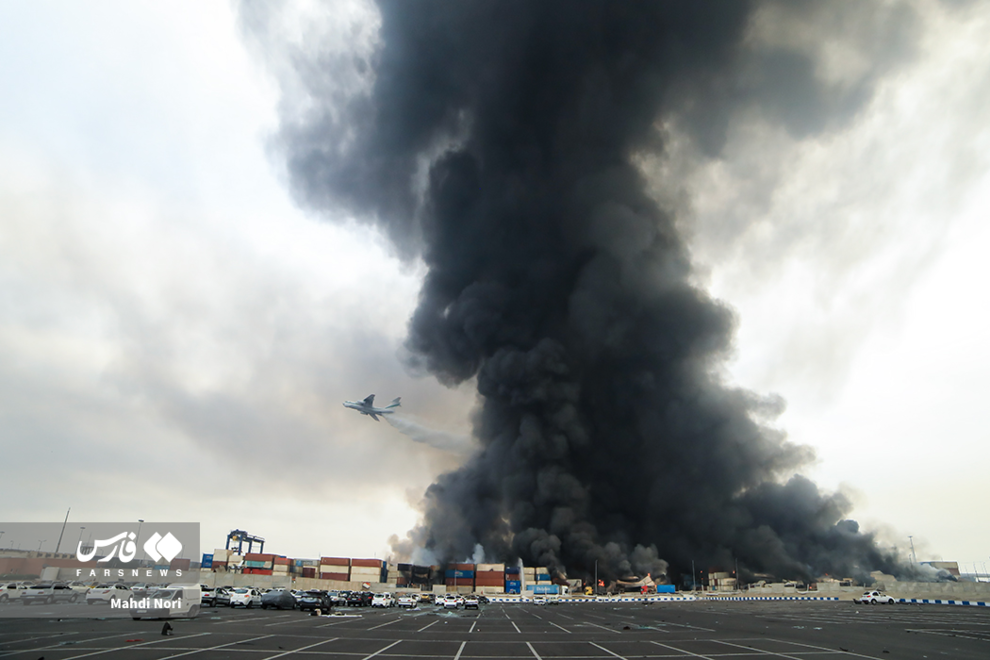 عملیات اطفای حریق بندر شهید رجایی به وسیله هواپیما، بالگرد و خودروهای آتشنشان ادامه دارد.