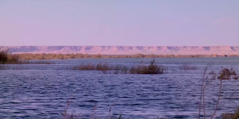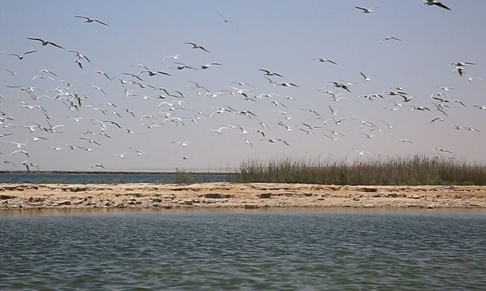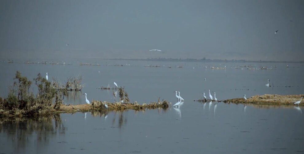عکس/ زیبایی خاص غروب آفتاب تا پرواز پرندگان در دریاچه نجف