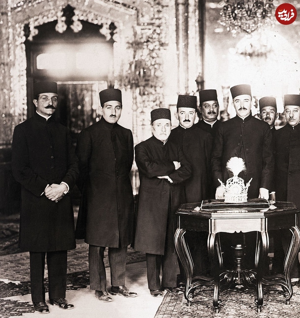 عکس/ ژست رسمی مقامات دربار و تیمورتاش ۹۹ سال پیش در کنار تاج رضاخان