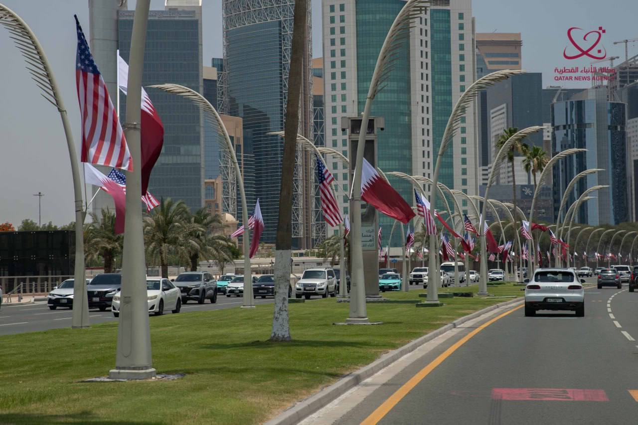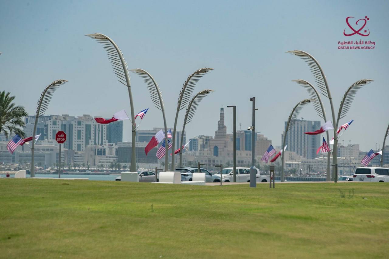 دوحه پایتخت قطر با پرچمهای امریکا تزیین شده و آماده استقبال از ترامپ است. این نخستین سفر یک رئیس جمهور امریکا به قطر بعد از ۲۲ سال است.
