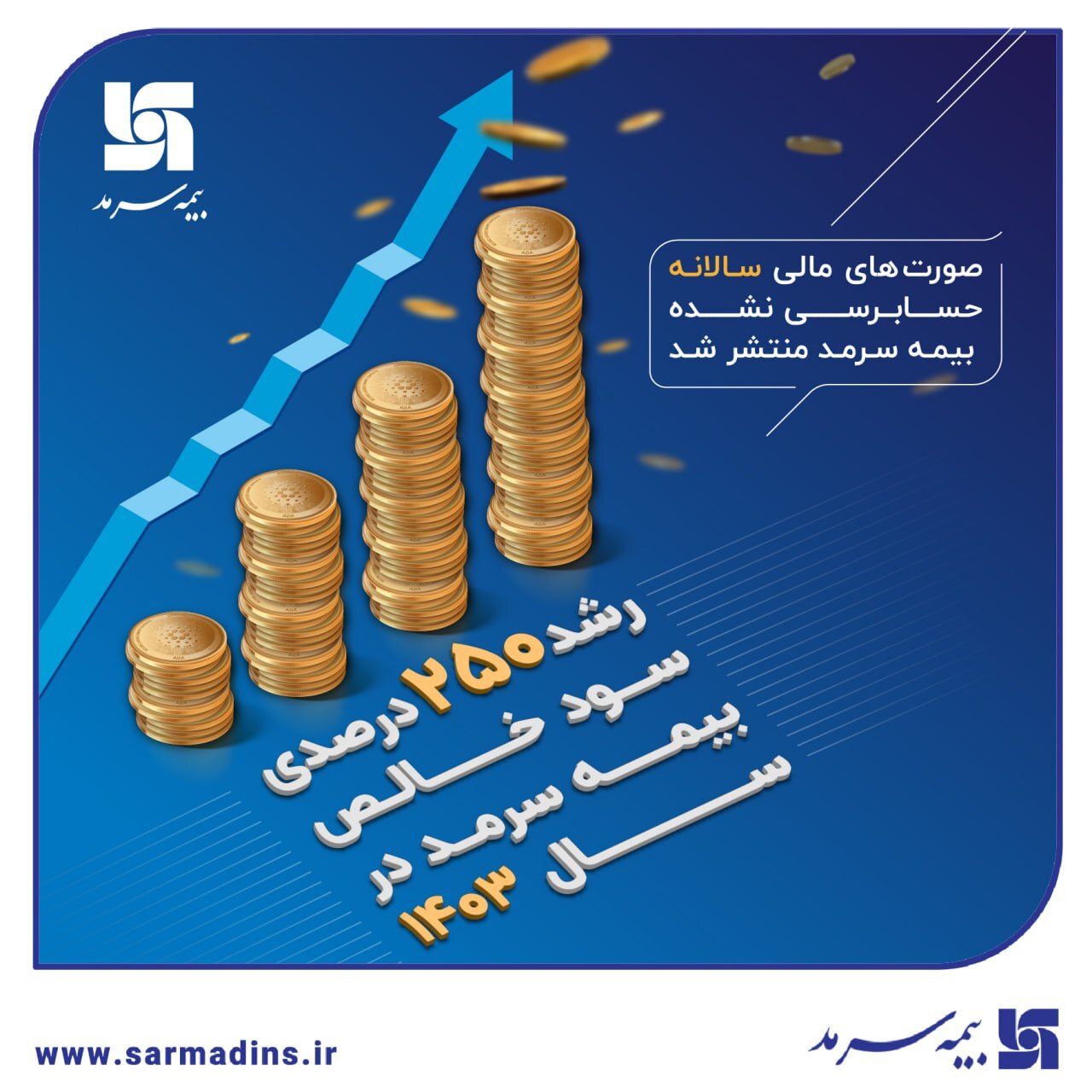 اقتصاد ۲۴- صورتهای مالی سال مالی منتهی به ۳۰ اسفند ۱۴۰۳ شرکت بیمه سرمد (حسابرسی نشده) از طریق سامانه جامع اطلاع رسانی ناشران سازمان بورس و اوراق بهادار (کدال) منتشر شد. براساس صورتهای مالی، سود خالص بیمه سرمد با رشد چشمگیر ۲۵۰ درصدی به بیش از ۳۶۲ میلیارد تومان رسیده و سود انباشتهای به مبلغ ۱۱۰ میلیارد تومان گزارش شده است تا بیمه سرمد پس از ۳ سال از وضعیت زیان انباشته خارج شود.