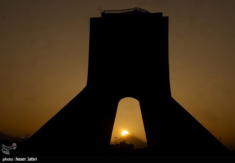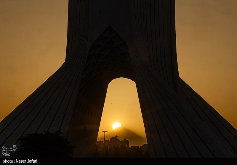 لحظه طلوع خورشید از پشت دماوند و بین ستونهای برج آزادی، اتفاقی نادر است که به دلیل تغییر زاویه طلوع در طول سال تنها در روزهای خاصی قابل مشاهده است. این پدیده در روز ۲۹ اردیبهشت ۱۴۰۴ از کنار برج آزادی قابل مشاهده بود.