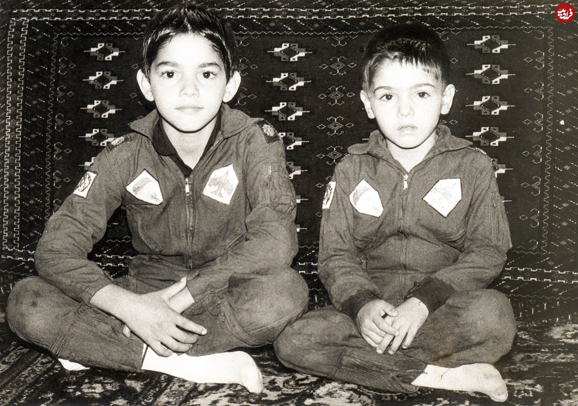 عکس/ محمد و حسین فرزندان شهید عباس بابایی ۴۴ سال پیش در لباس خلبانی
