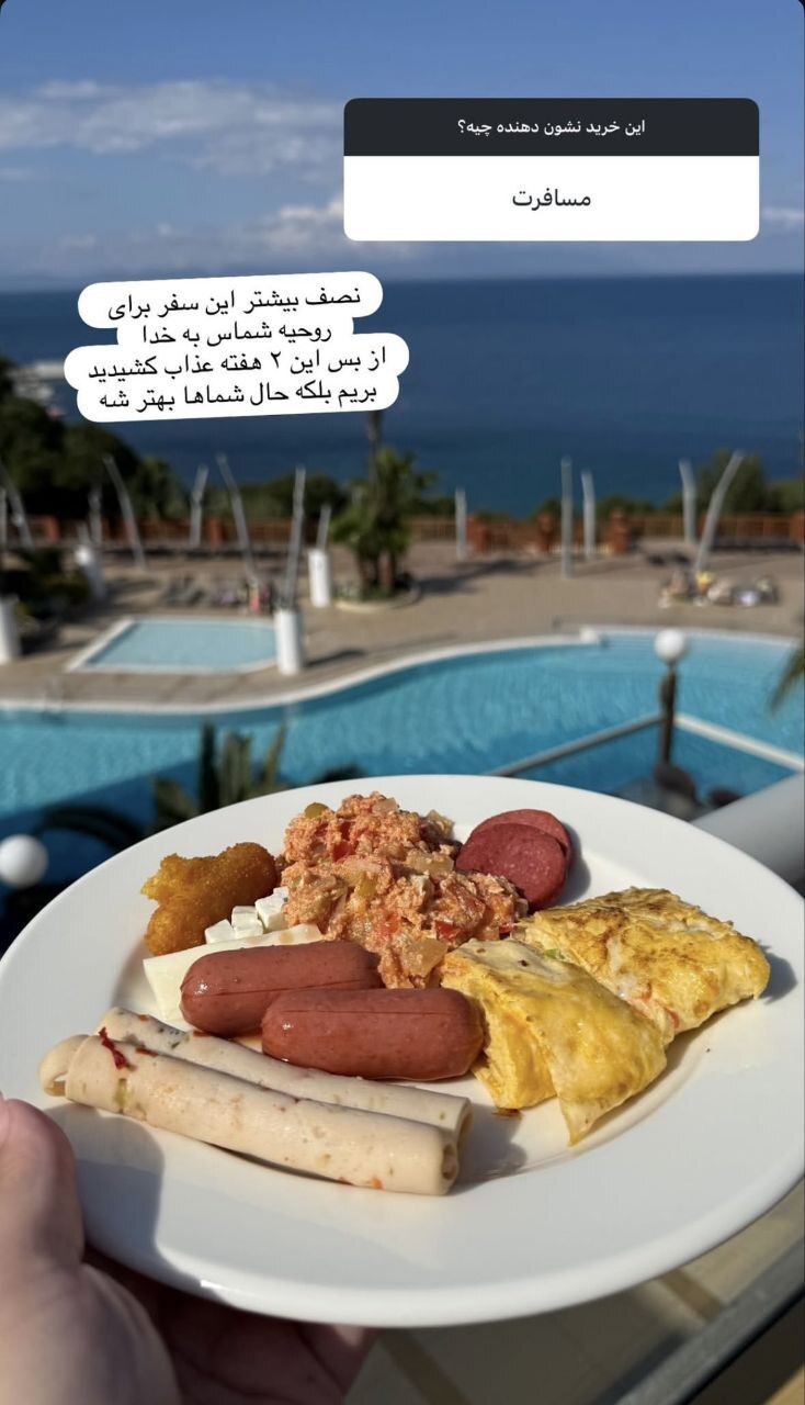 تصویری از استوری اینستاگرام صفحه یک بلاگر مشهور طی ساعات اخیر با واکنش تند و منفی کاربران فضای مجازی مواجه شده است. او در این استوری نوشته: «نصف بیشتر این سفر برای روحیه شماس به خدا از بس این ۲ هفته عذاب کشیدید بریم بلکه حال شماها بهتر شه.»