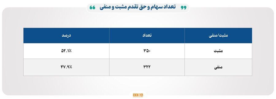 براساس این گزارش، در این بازه زمانی، ۳۵۰ نماد مثبت و ۳۲۲ نماد منفی بود.