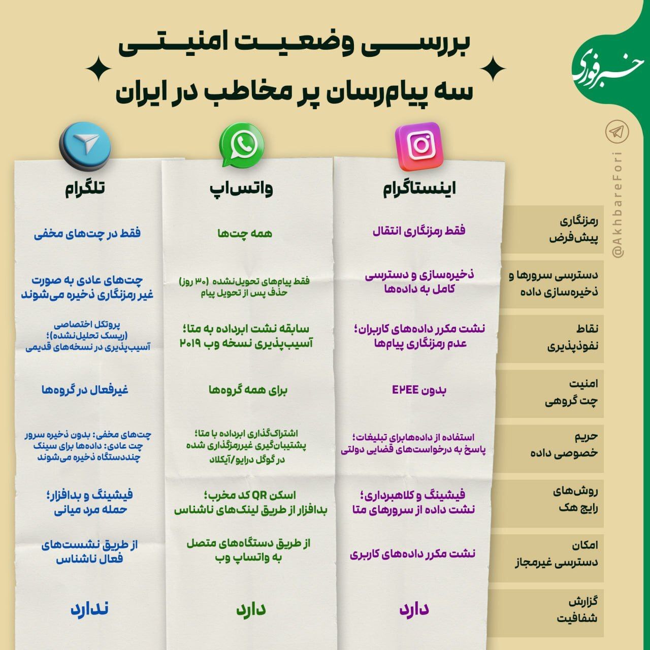 اینفوگرافی/ بررسی وضعیت امنیتی ۳ پیام‌رسان پرمخاطب در ایران