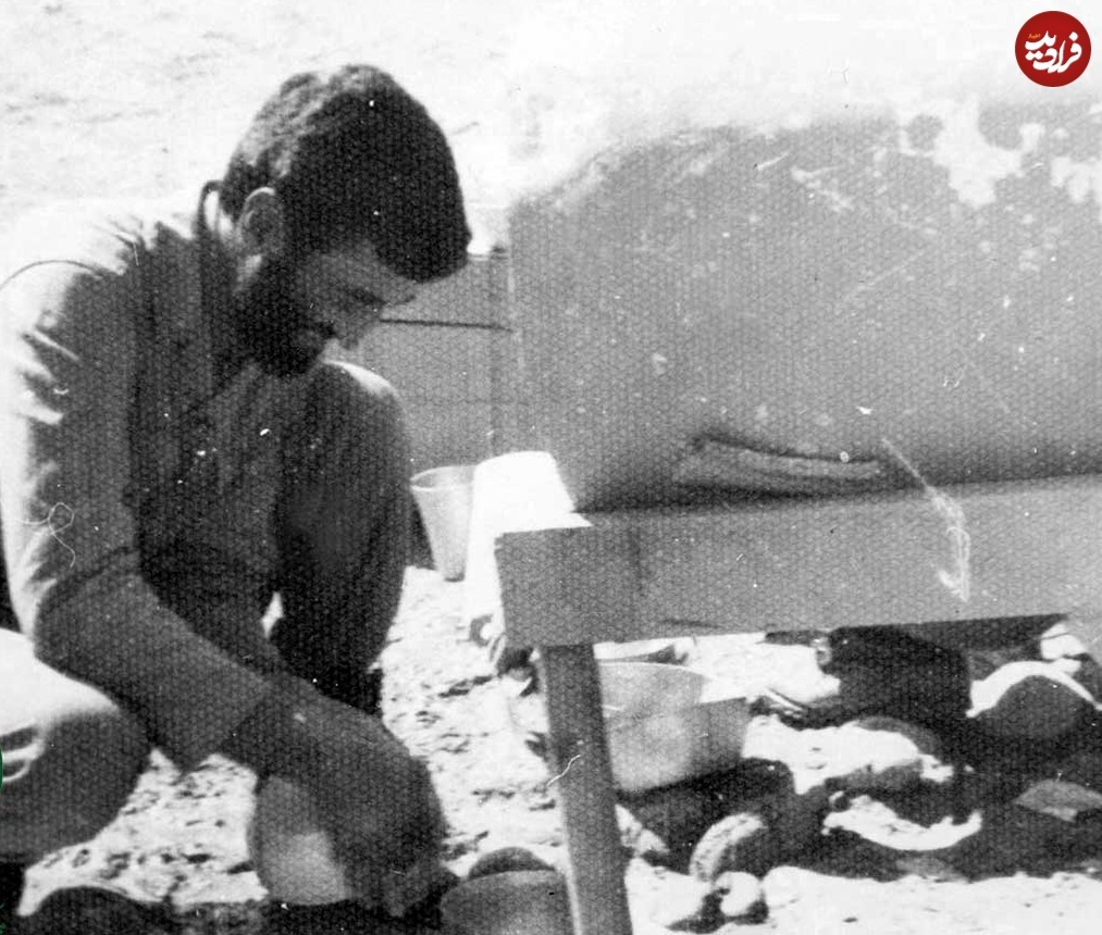 عکس/ چهره دیده نشده و جالب احمد متوسلیان ۴۳ سال پیش در حال ظرف شستن و ایام جنگ