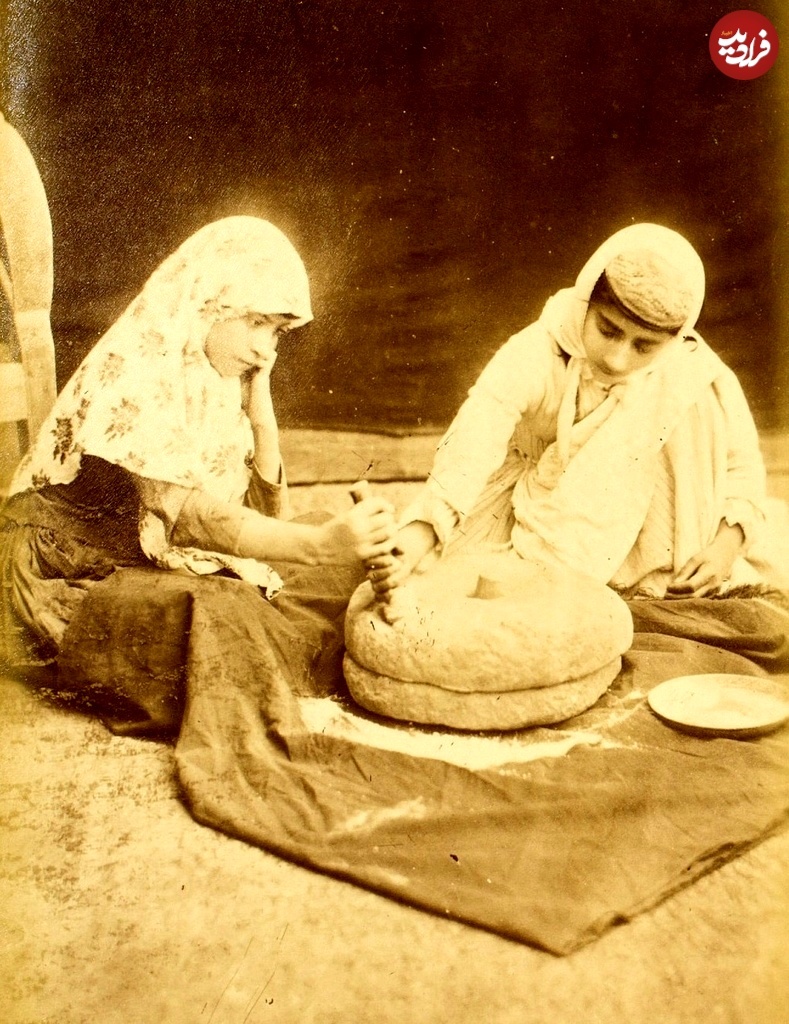 عکس/ چهره غمگین دو دختر نوجوان ۱۳۰ سال پیش در حال کار با آسیاب دستی