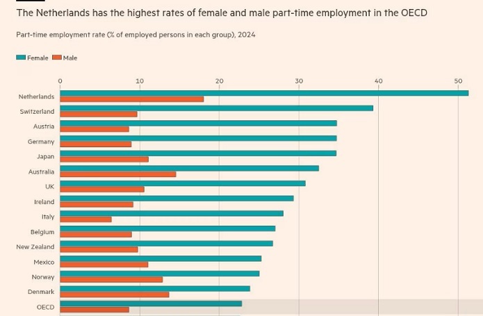 هلند بالاترین نرخ اشتغال پاره وقت زمان و مردان را در مقایسه یا سایر کشورهای عضو سازمان توسعه و همکاری اقتصادی دارد
